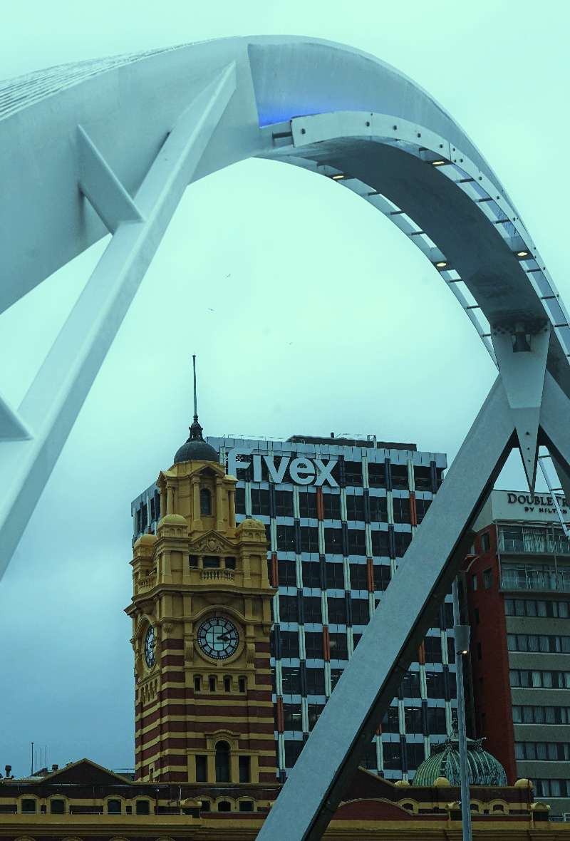 玻璃如镜面,折射出墨尔本的中央商务区。