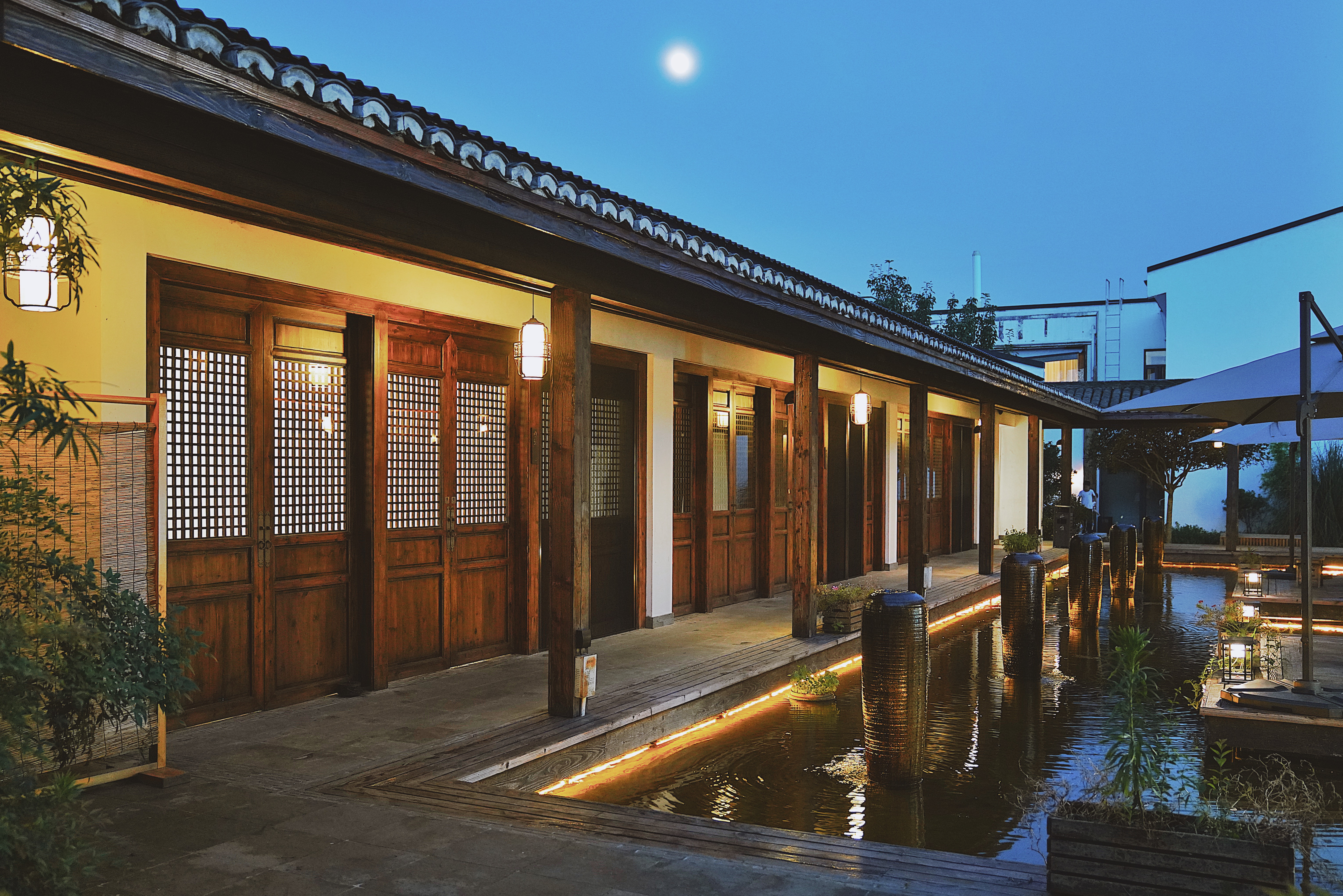 酒店的外观、大堂、餐厅看似现代简约,但不乏有古朴文化的点缀。在有限的天井空间里以植物为主要元素,精致的点缀设计让小空间具有更多的层次感,营造出了一种柔美、惬意的感觉。