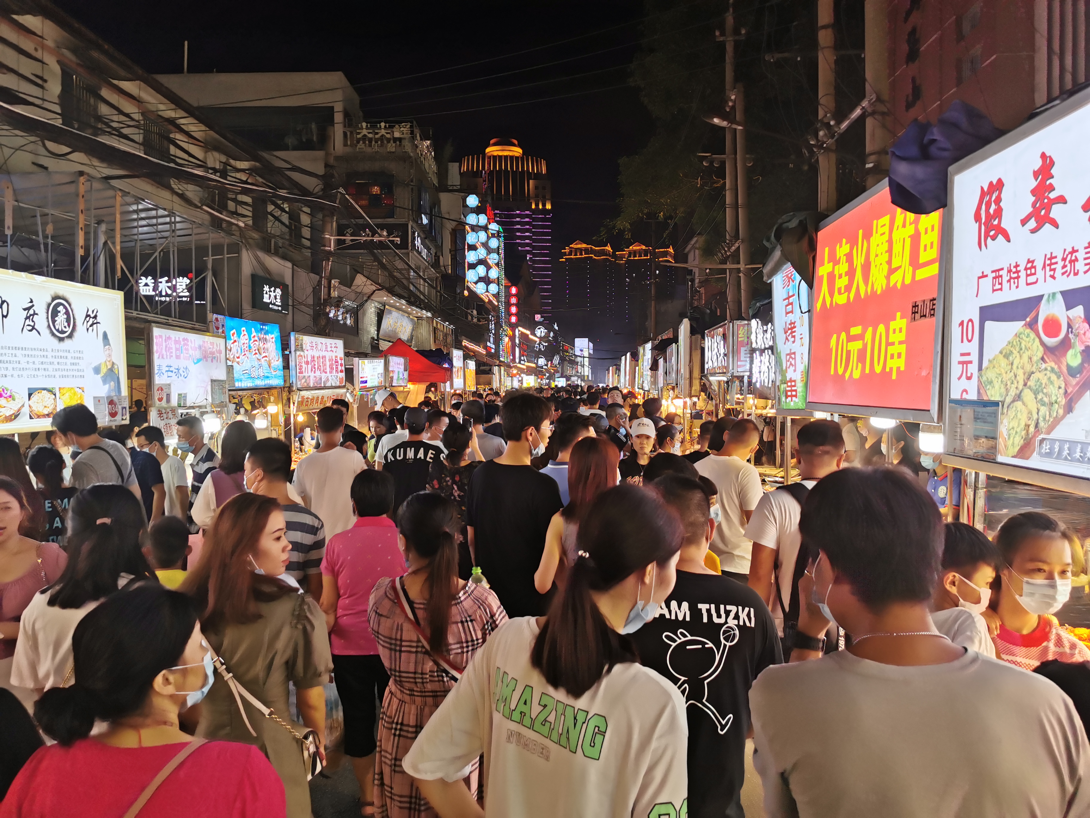 一直到晚上12点左右往回走,路边摊依旧热闹非凡热火朝天,这种市井的烟火气息,在很多 大城 市里很少见了, 南宁 人民对吃和夜生活的热爱,也让人更喜欢这座城市。