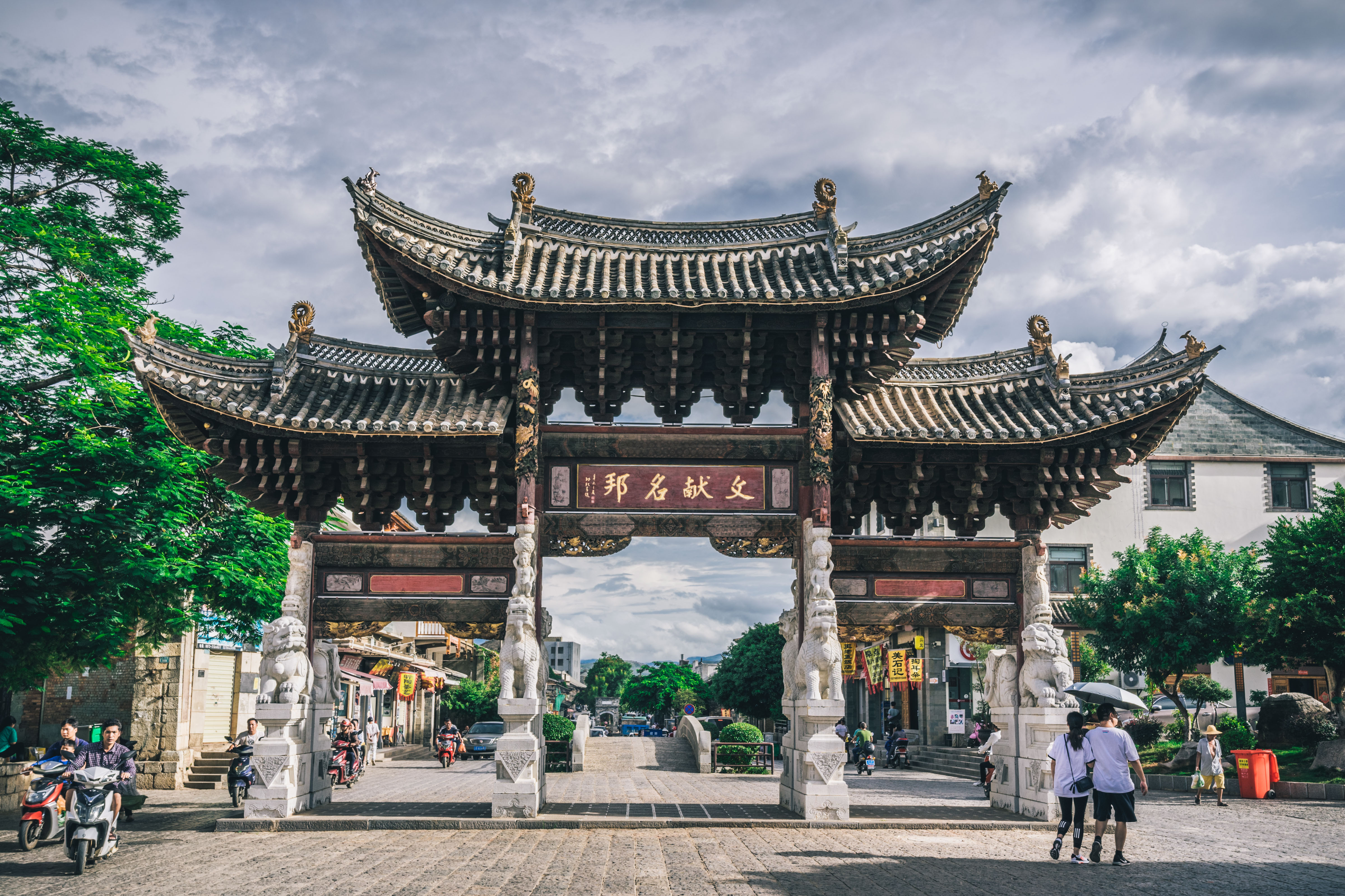 朝阳 楼始建于明朝洪武年间,据说比天安门还早28年,是 建水 古城的地标,城楼檐下悬挂着好大的“雄镇东南”巨匾非常醒目。朱红色的外墙,三重檐的楼宇,像极了天安门城楼。