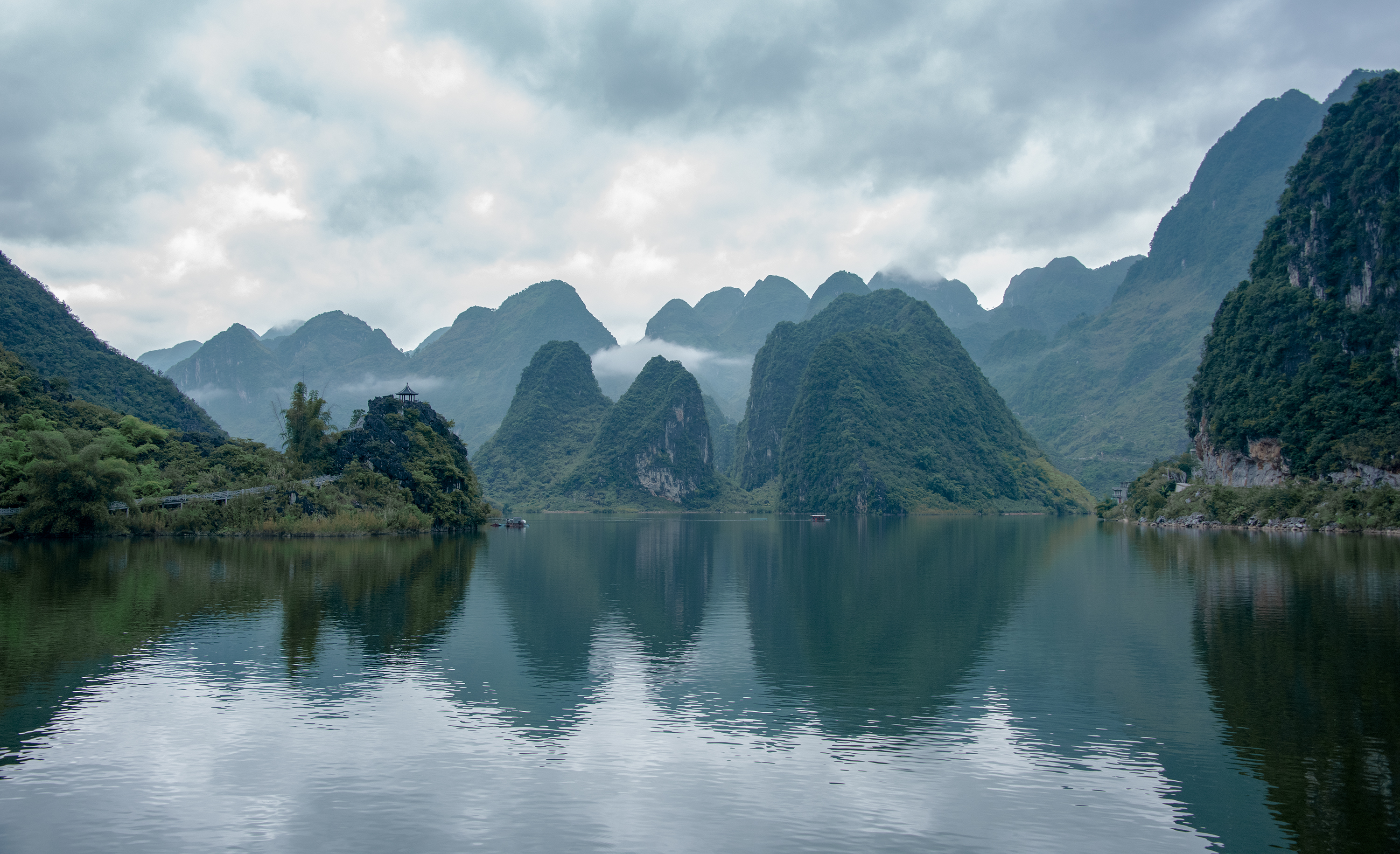 浩坤湖四面环山,只有一条隧道联通外面的世界,在08年以前这里甚至没有通公路,当地村民说以前出去一趟得坐船,接着翻山,花上一整天的时间才能到达凌云县城