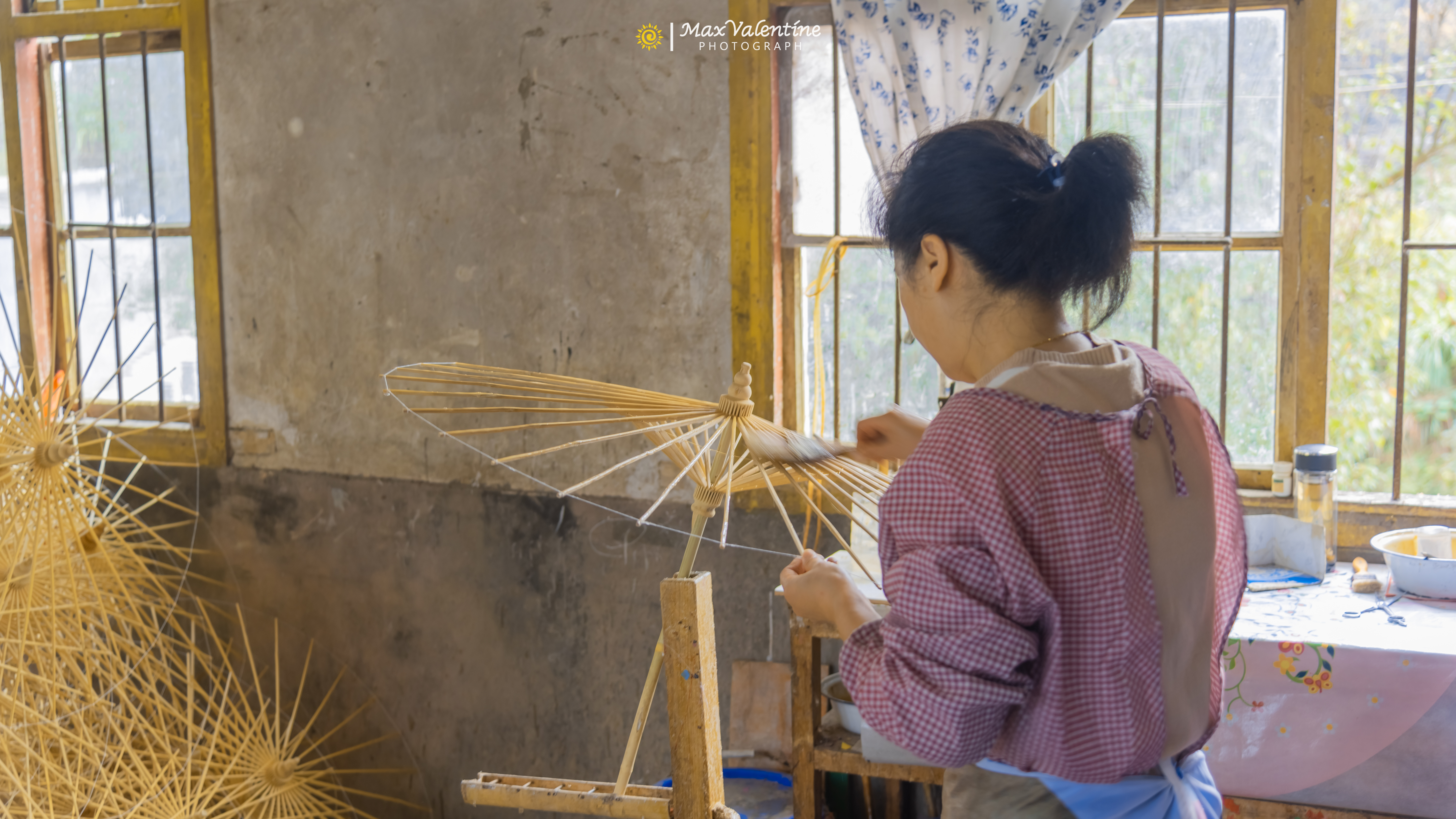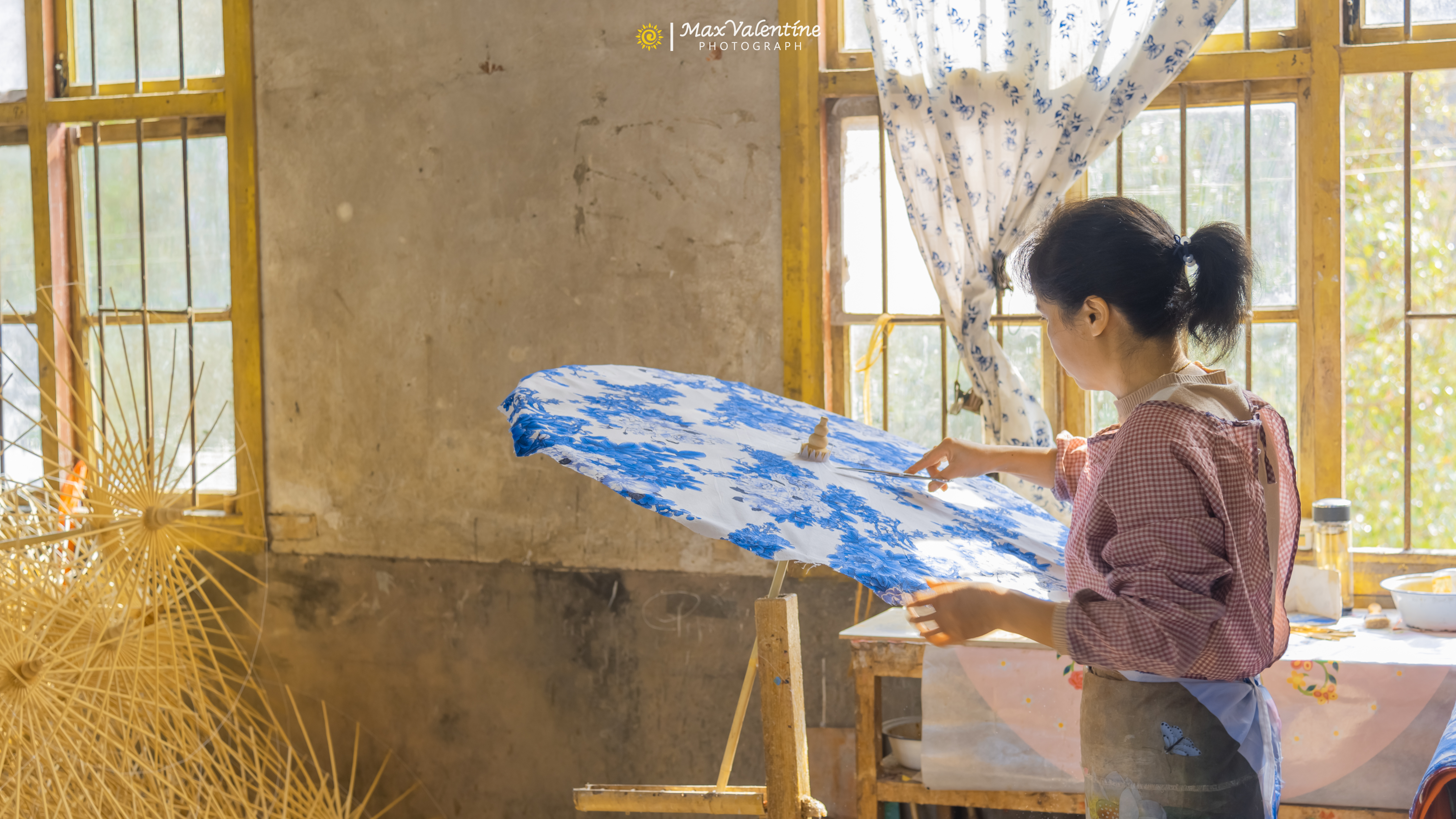但是我觉得伞面的制作却不如以前。现在的伞面不是油纸绘制,而是彩色印制的布料,也许更换下伞面,伞场能更好的打开销路。伞场之前是小学的校园,搬迁以后,教室空出来成为了这一道道工序的作坊,保留这个地区曾经辉煌的记忆,作为怀念吧