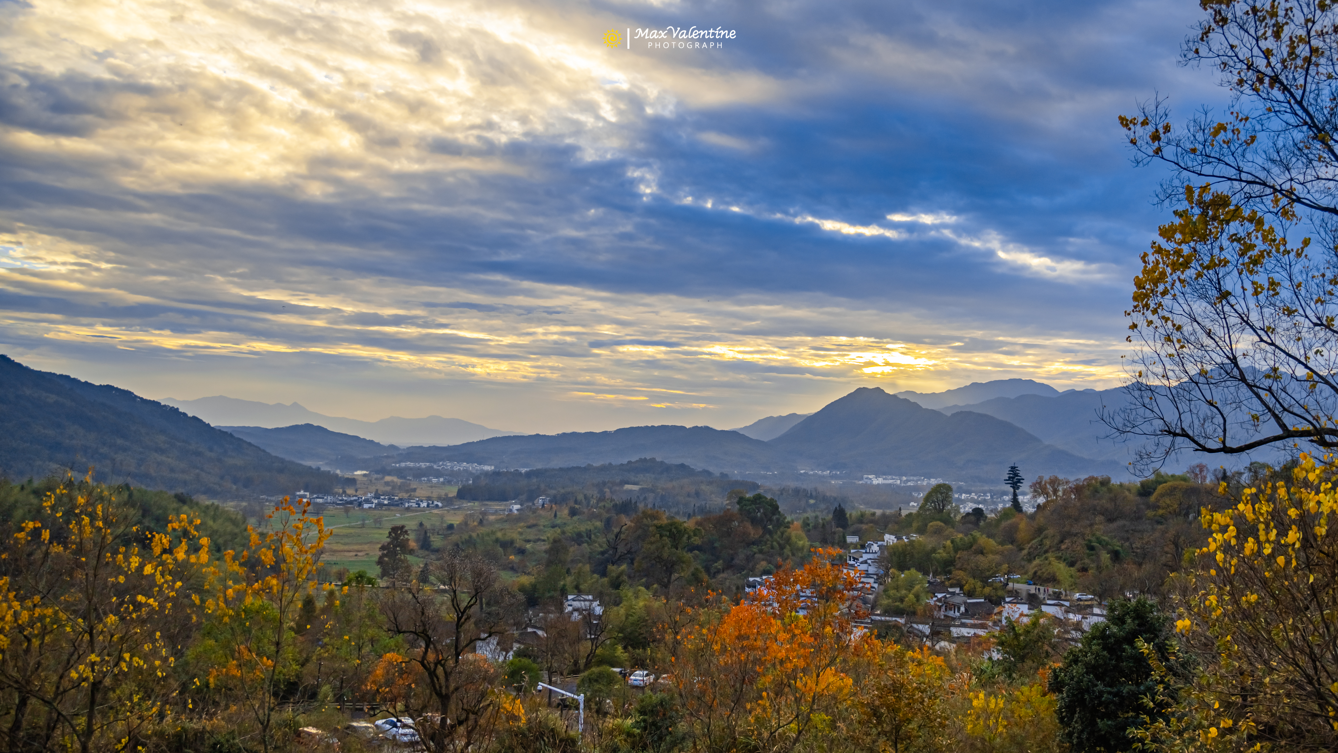村庄横卧在长长的溪流边,溪水上曾经有横跨的小桥,到达以后先入住休息,等候日出日落时间到村尾山坡守候,步行时间约20min,到达山坡是台阶路,遇到水泥平台回望最佳,当然在路另一次的山林里正对日落角度,同时有枫叶古镇前景也颇为不错