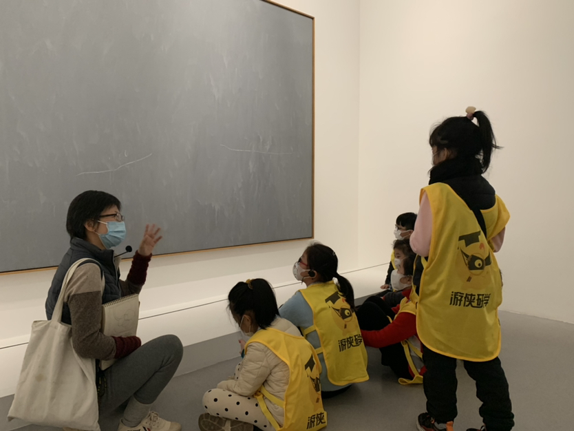在寄包处听老师的介绍,对今天的展览充满期待。