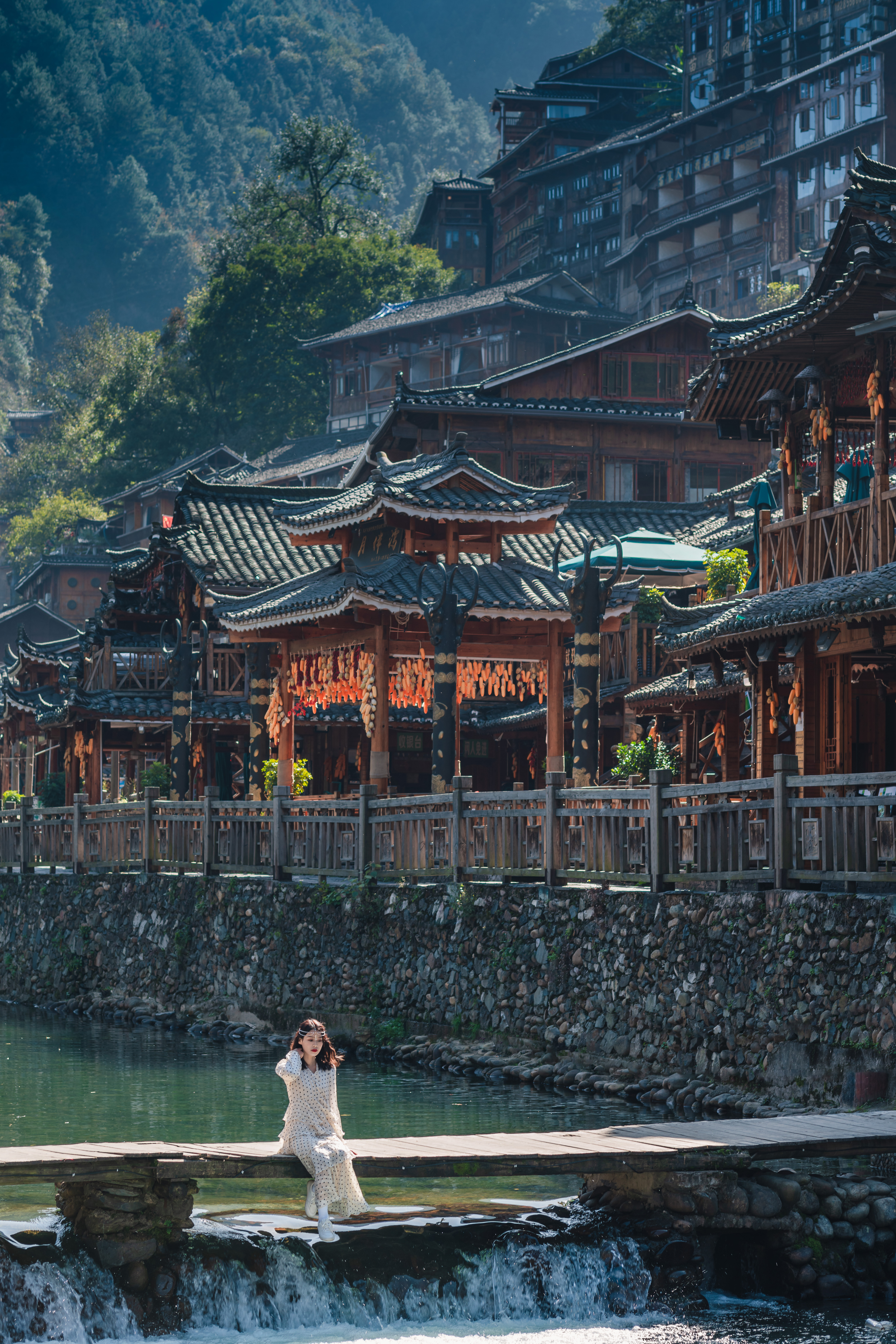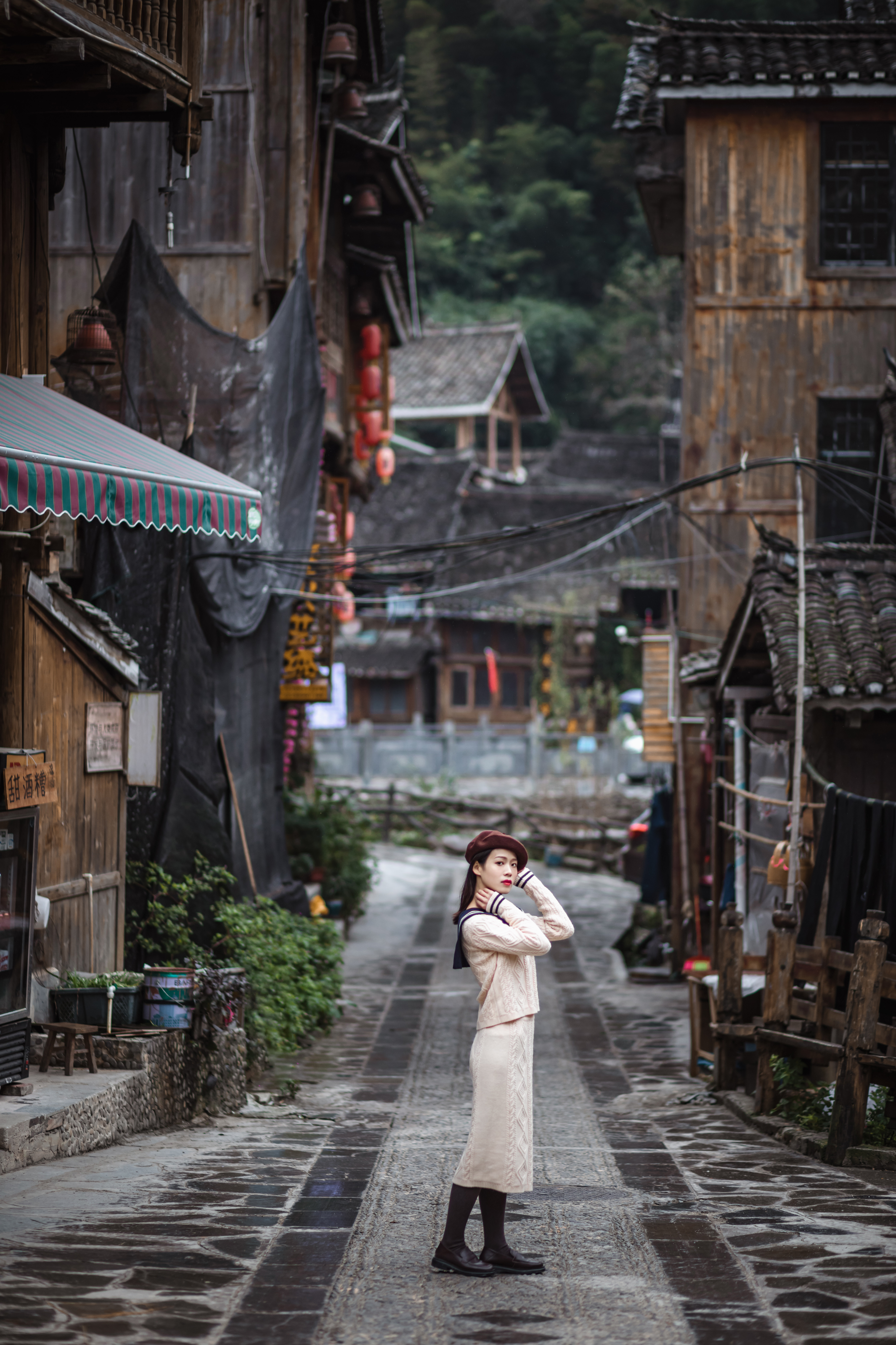 苗寨街道很有特色,建议清晨拍摄,光线柔和,而且路上游客很少。傍晚可以拍逆光照片,人物周围有轮廓光,穿苗服绝美!