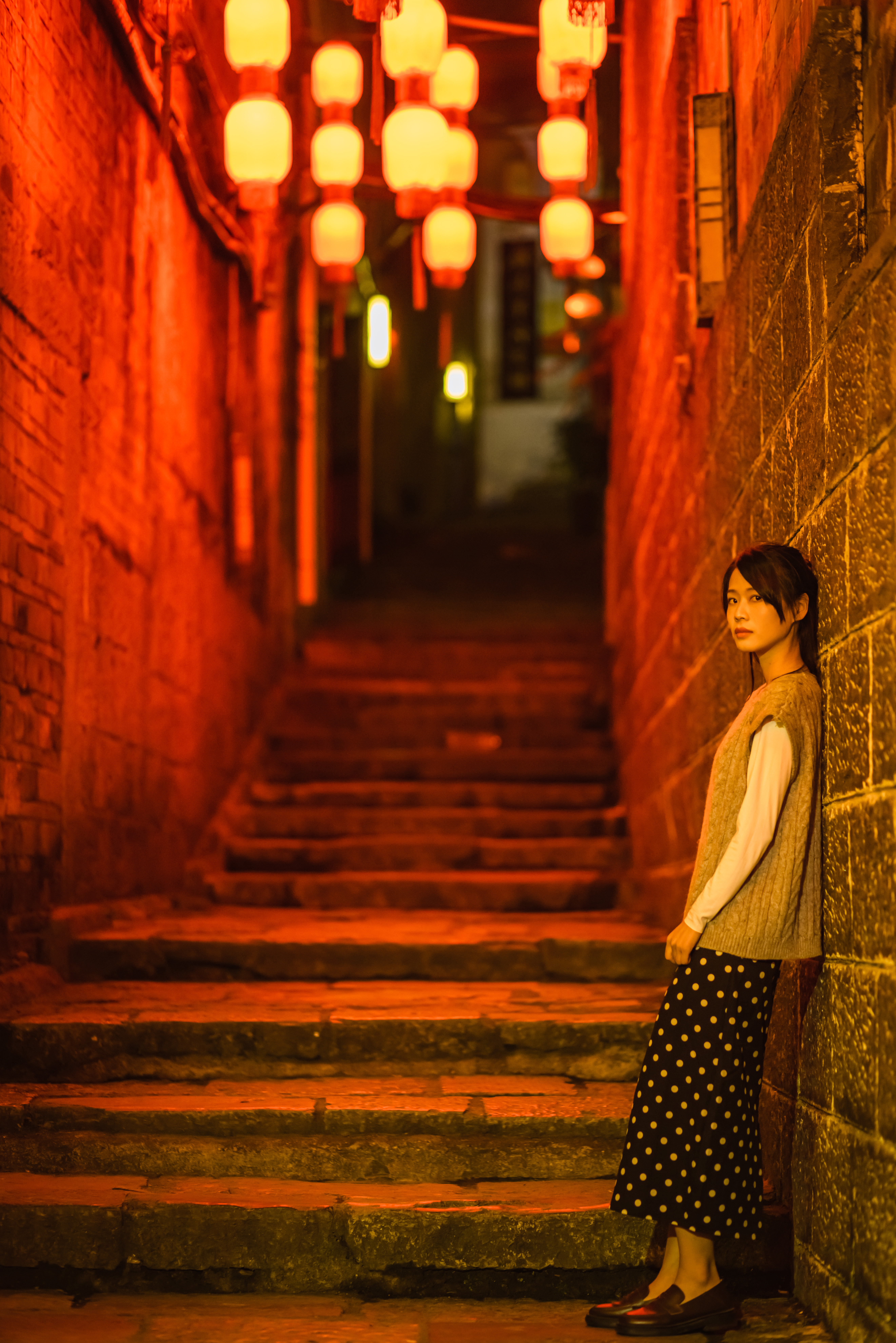 路过一家小卖部,看到他们的阁楼很好看,征得同意后上去拍了一张“阁楼小姐”的感觉。