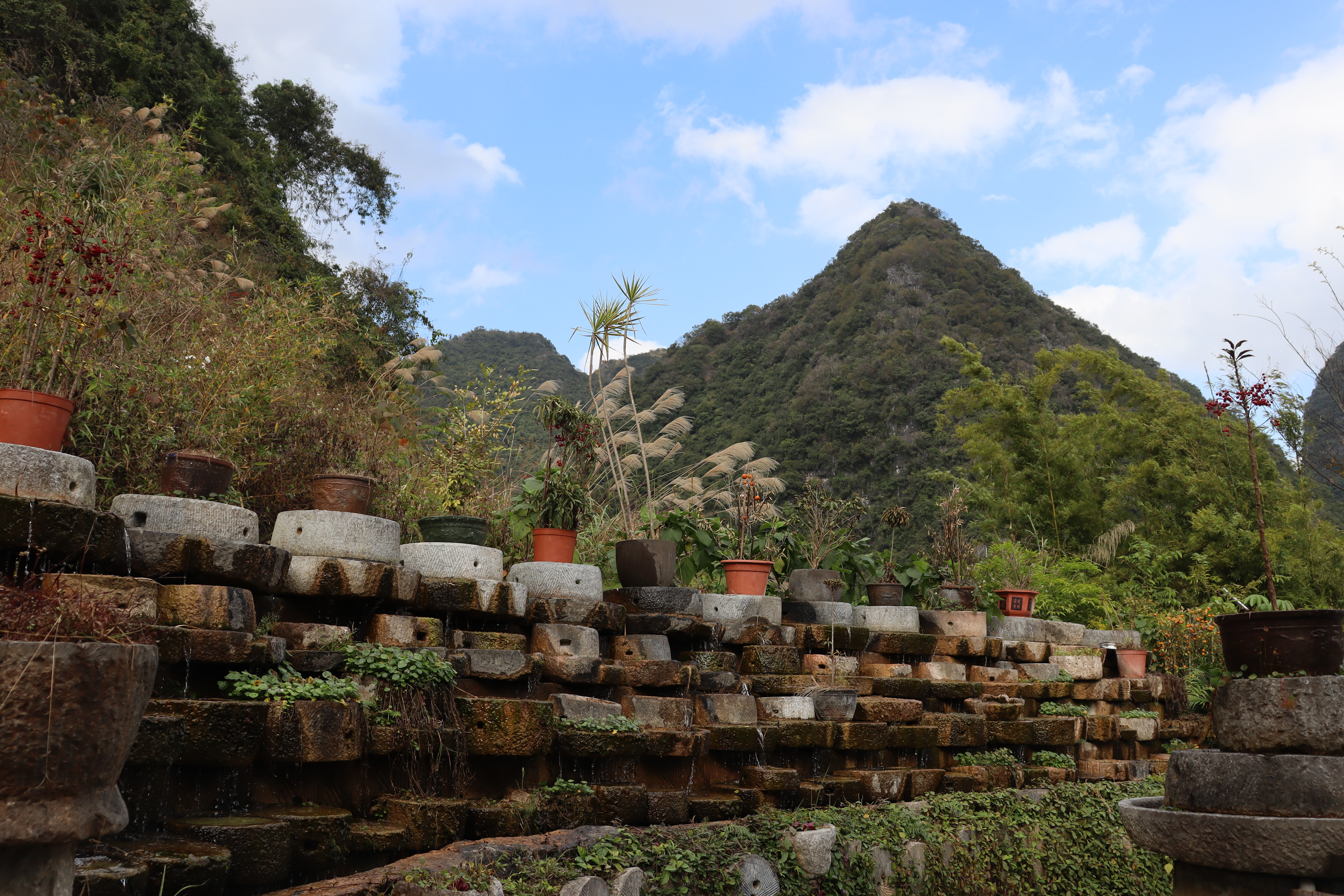 这是鹅泉古桥,建于清朝年间,桥长约60米,宽1.5米,是由15个石拱门组成的,长桥卧波,景色优美,气势壮观,是靖西市保留得比较完整的古桥。古桥旁边有些农家乐,我们到了鹅泉刚好中午时间,大家在农家乐点了餐在古桥上拍照(特色菜:黄皮焖鸭、水草简单、鹅泉河鱼),非常方便