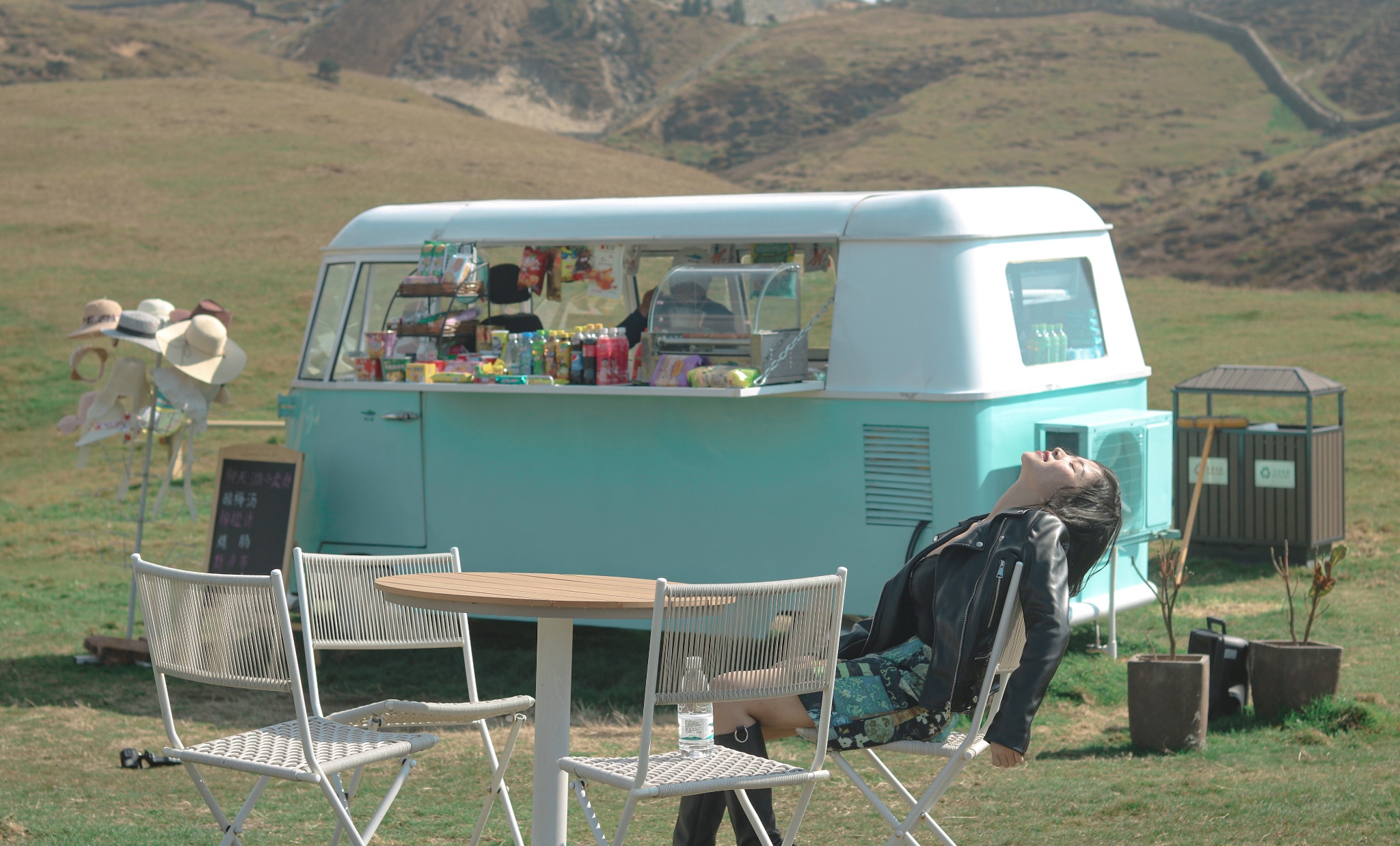 浪漫的午后,一辆蒂芙尼蓝的餐车给这片草原增加了好多浪漫。
