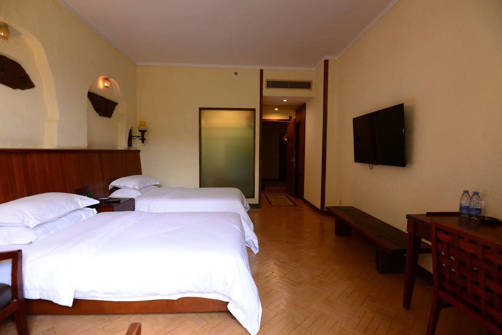 不等他们买完喝的,我们已经办理好入住手续,在原处等他们了。听说这里的度假酒店是远古森林的皇宫,所以一等他们买完喝的,我们就连忙拉着行李往房间方向走去。