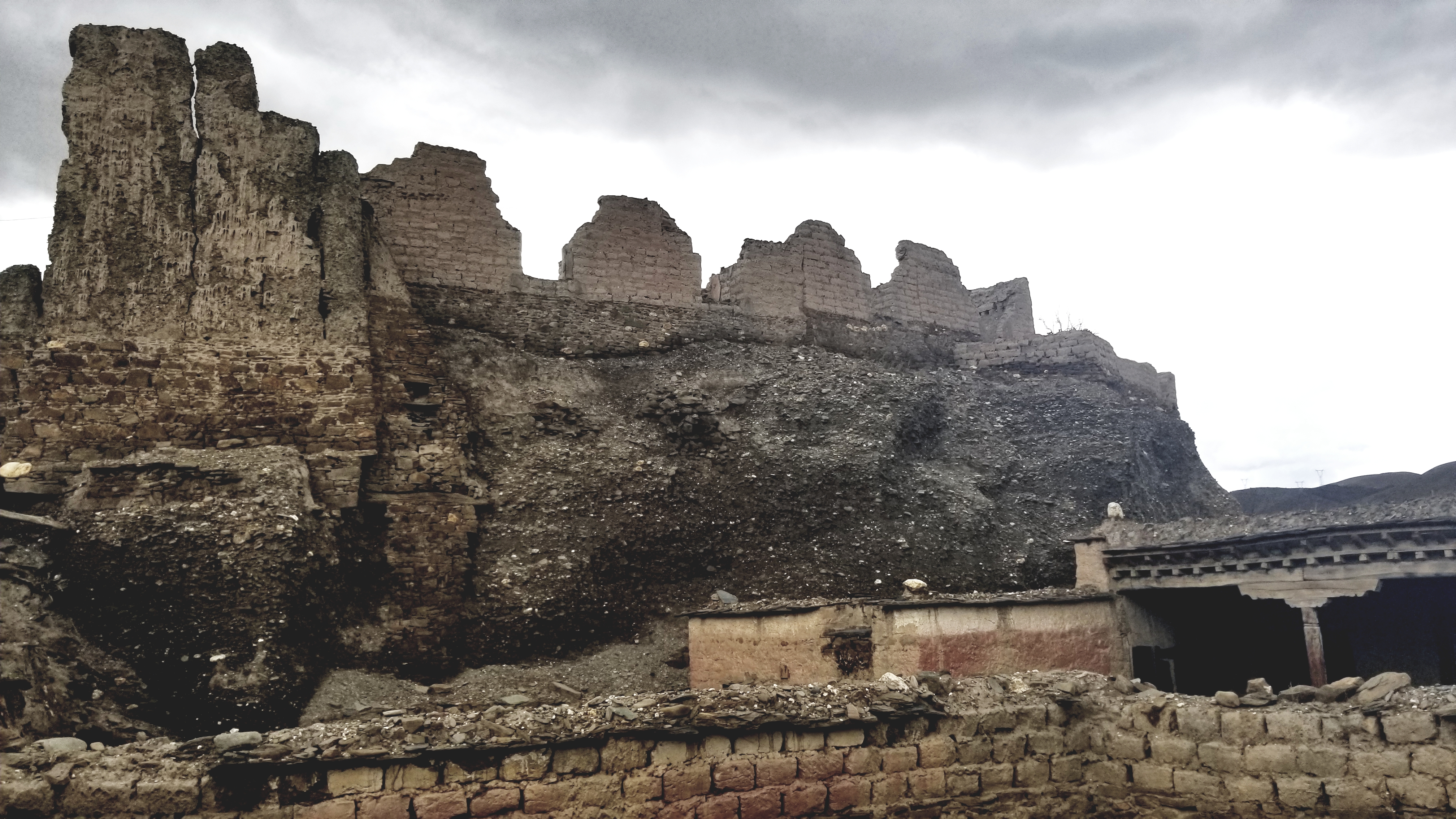 2018年10月的某日:林芝→山南,车子一路颠簸到路过曲松县,无聊的张望中一大片残垣断壁映入眼帘!枯枝断壁,裸露在外的房梁,大片坍塌的建筑和宫殿都引起了我的兴趣。