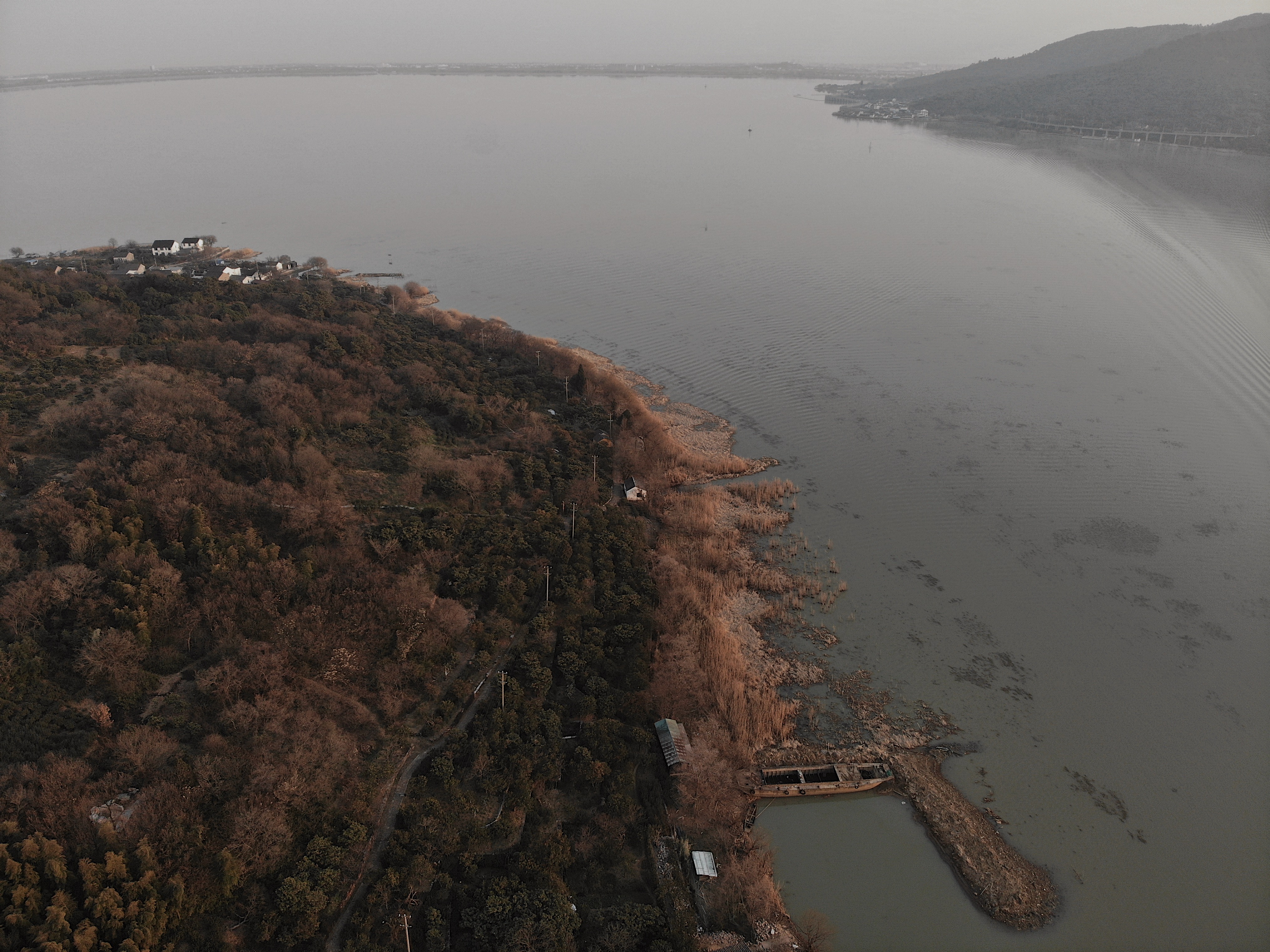 想看海,却又怕被严冬的海风吹得头痛,于是几乎不加思索地想到了附近那片大得像海一样的——太湖。
