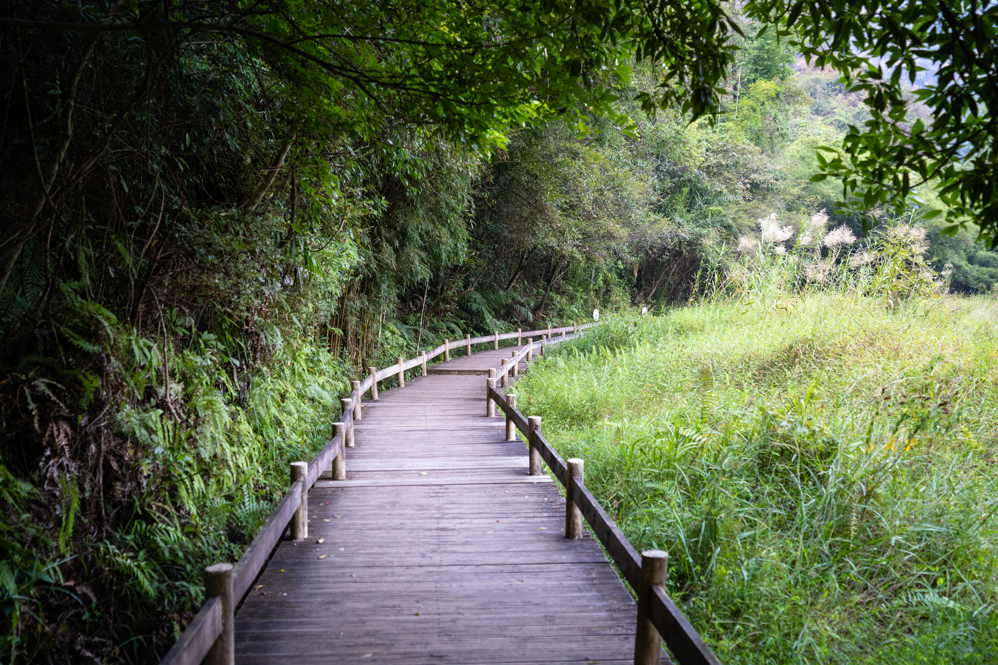 进到山里,第一感受便是空气格外的清新,这里以自然生态为依托,有超过二千多种的植物,堪称亚热带生物基因库,大片大片的常绿阔叶林,让这里每立方厘米负离子含量10.5万个,被誉为“天然氧吧”。