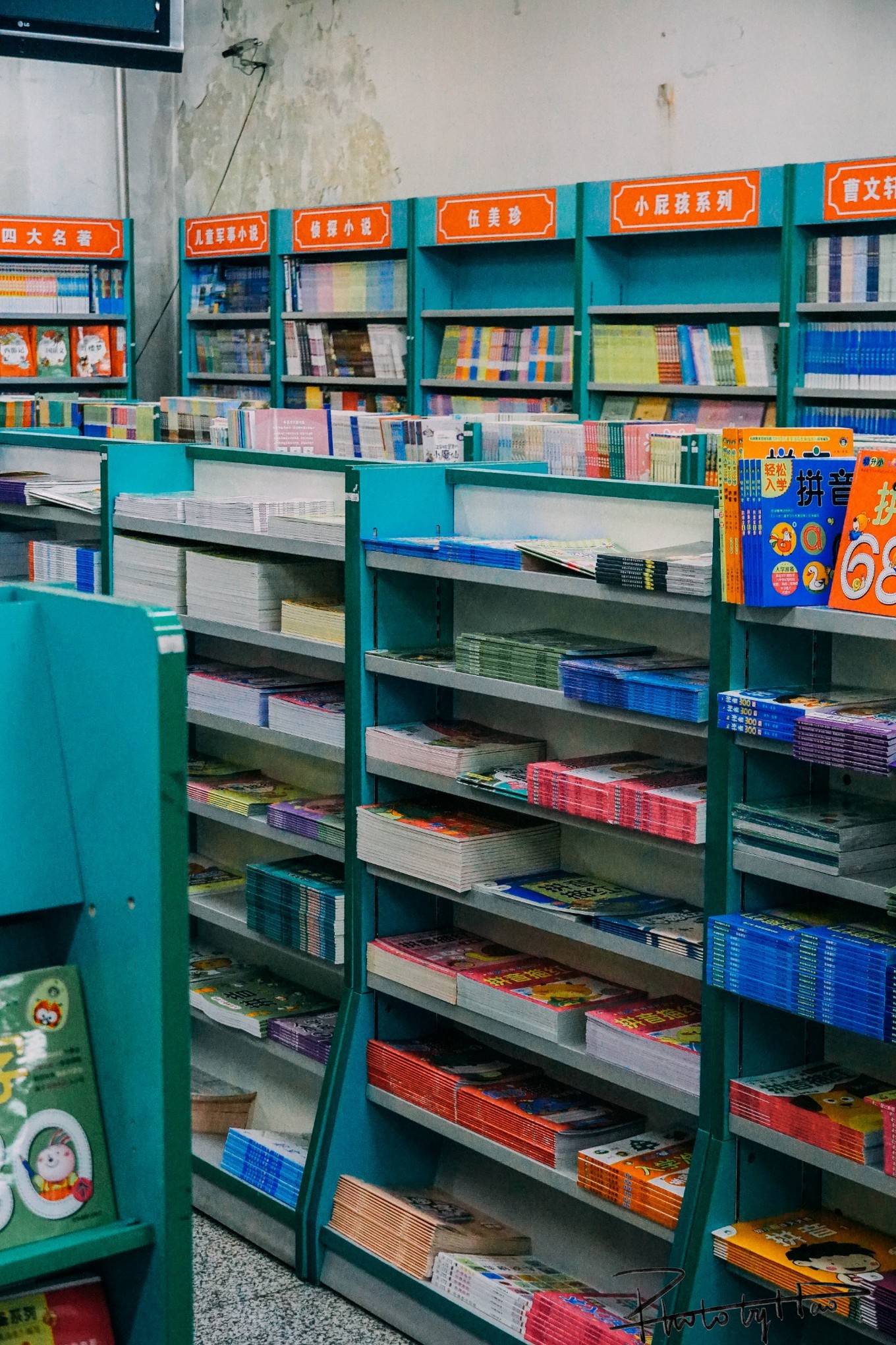 这里就像我记忆中小时候新华书店的样子,普通的木质书架,堆满了各式各样的书籍。