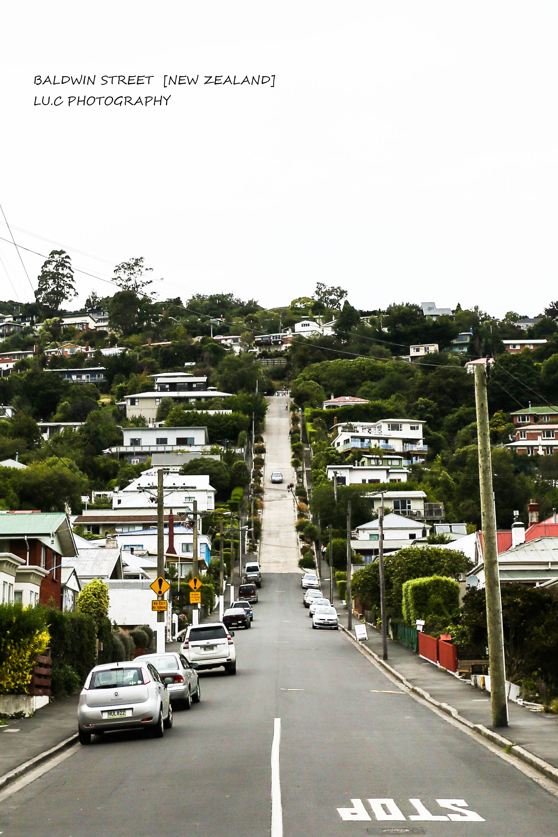 这小街只有350米长,下面铺沥青的那段较平缓,上面铺水泥的那段有161米,据说斜度达35%。关于这段路的来源,是新西兰还作为英国殖民地时英国人搞出来的。在英国人规划但尼丁时,因为离得太远了交通工具不给力,规划工程师没有实地勘察,不知道这里坡度这么大就直接在二维的平面图上定性了。然后施工的工程师脑子比较梗,直接照图施工(英国人挺尊重规划的),还想了很多办法实现它,比如说上下两段材料不同是怕上面铺沥青天热会流下来之类的。