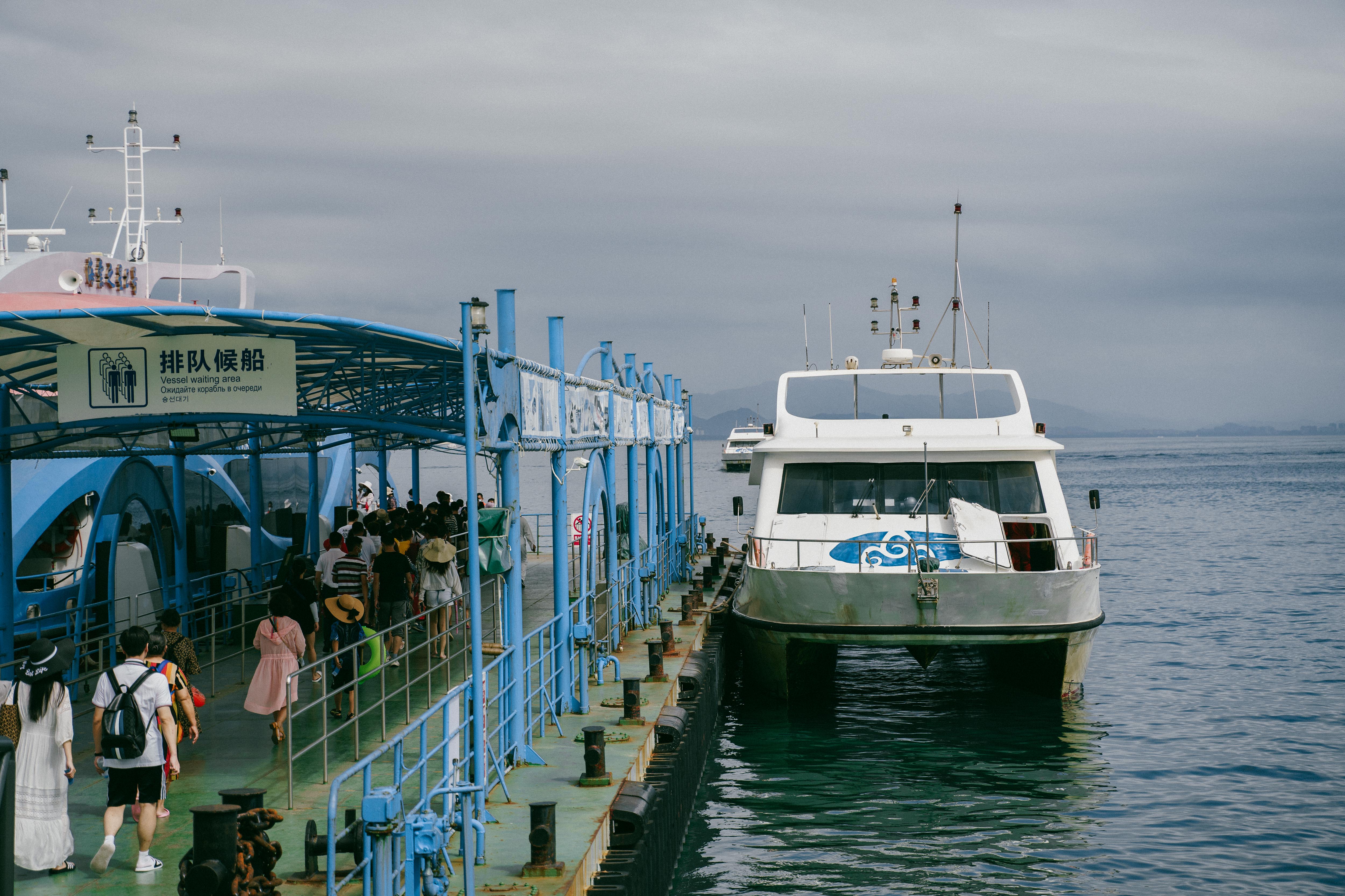 等邮轮靠岸,我们也拎着行李箱下去。此处必须表扬,我们“浪里白条”小分队男生真的太绅士啦,女生只要负责貌美如花,搬箱子的体力活儿男生真的好勤劳,表扬一下下。