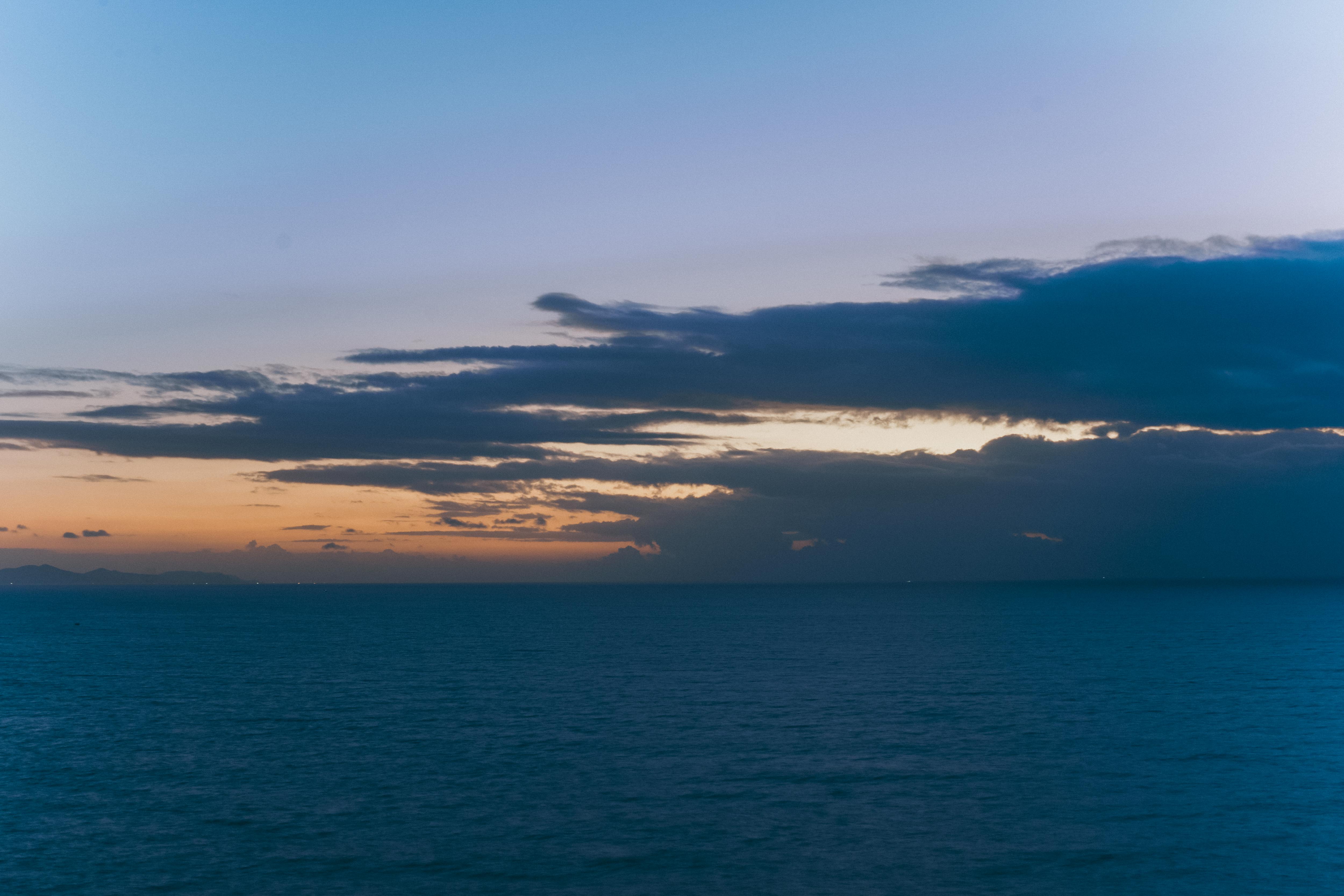 海上四五点儿的天儿不算好,远处厚厚低低的云层压着海平面,像是在下一场大雨,近处的天空又是阴阴的状态。