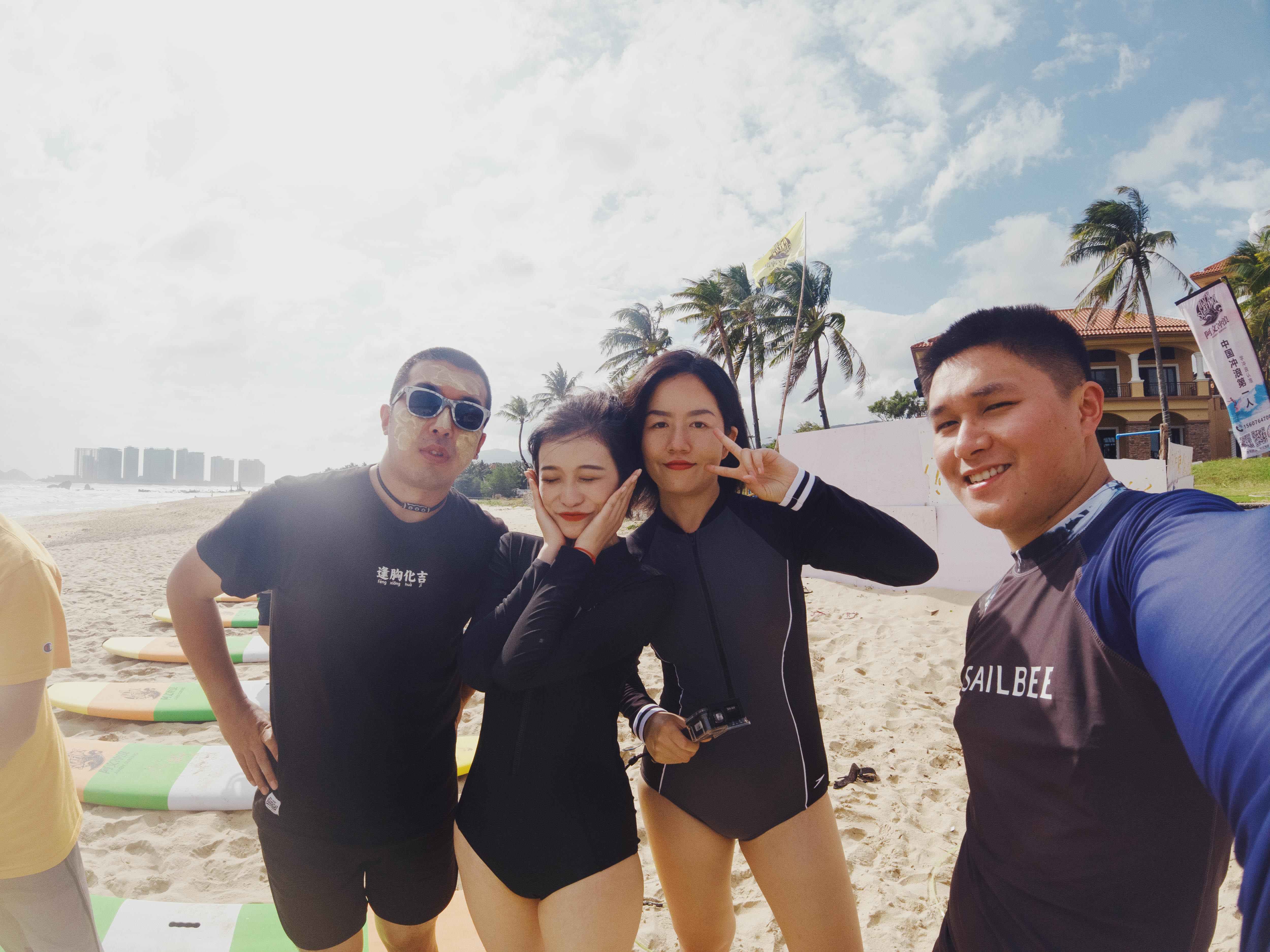 知识教学完毕,又到沙滩上教学,一人拿一块冲浪板儿酷劲十足,从在沙滩上匍匐到慢慢起身,再到浪里去感受,来自大海的热情是一浪接一浪,越是大浪,越是要前进。就算是破皮受伤,依旧要乘风破浪。