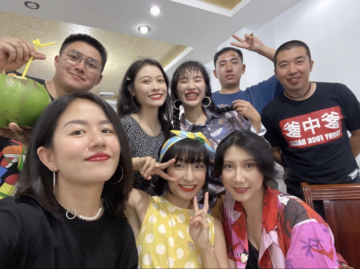 大王,在蜂首俱乐部见的第一天,椰梦长廊里就对这个女生留有印象。穿着黑色外衣,一头黑长直发,低头点燃一支烟,动作不能再酷了,有点儿像“特务”,哈哈哈。但第一天我处于睡梦状态,并没有说一句话。