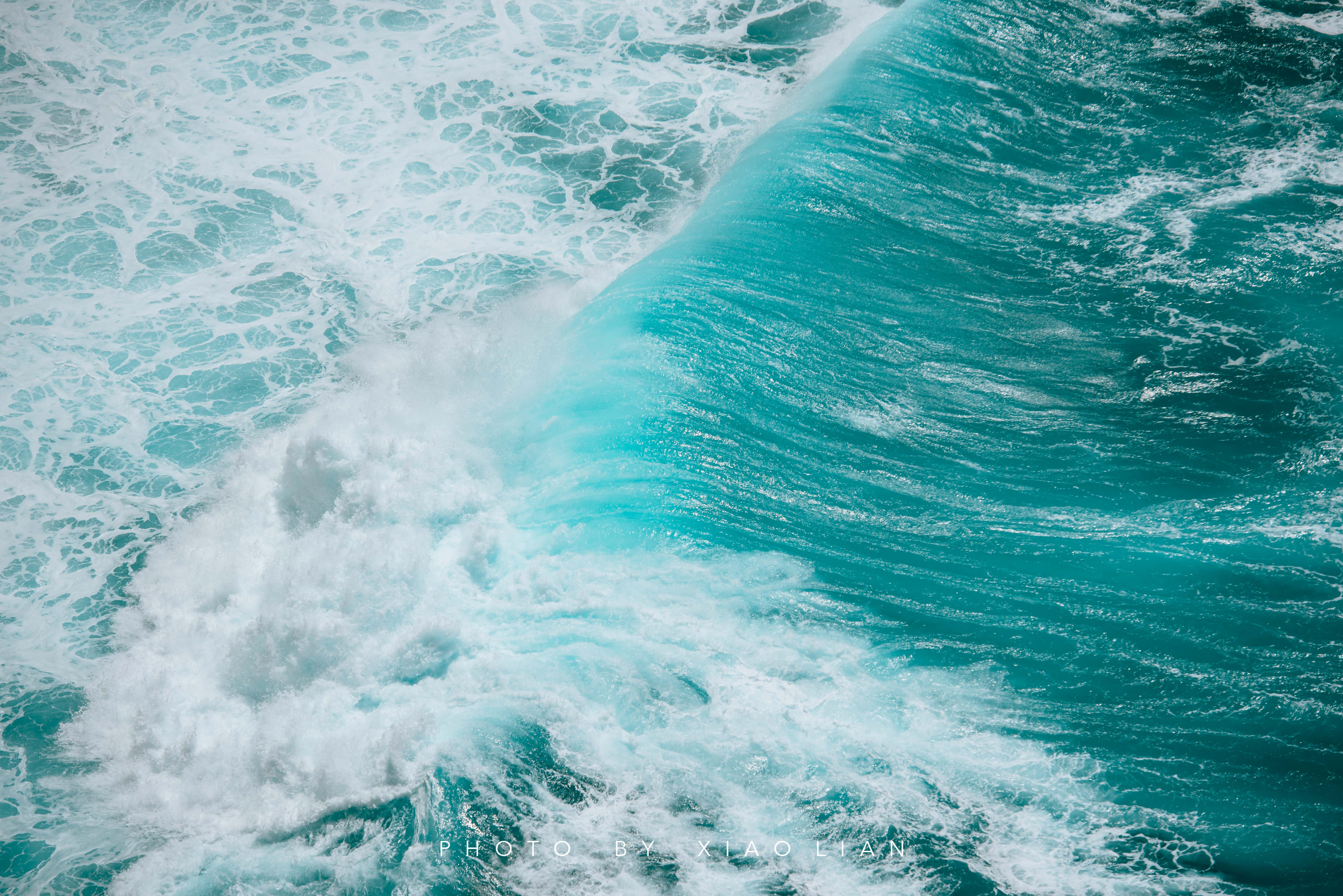 海水的颜色从白色到浅蓝、深蓝依次晕染开来非常富有层次美,而靠近岸边那浅蓝色的海真如玻璃一般透亮,今日,也为这片蓝而倾心啊。
