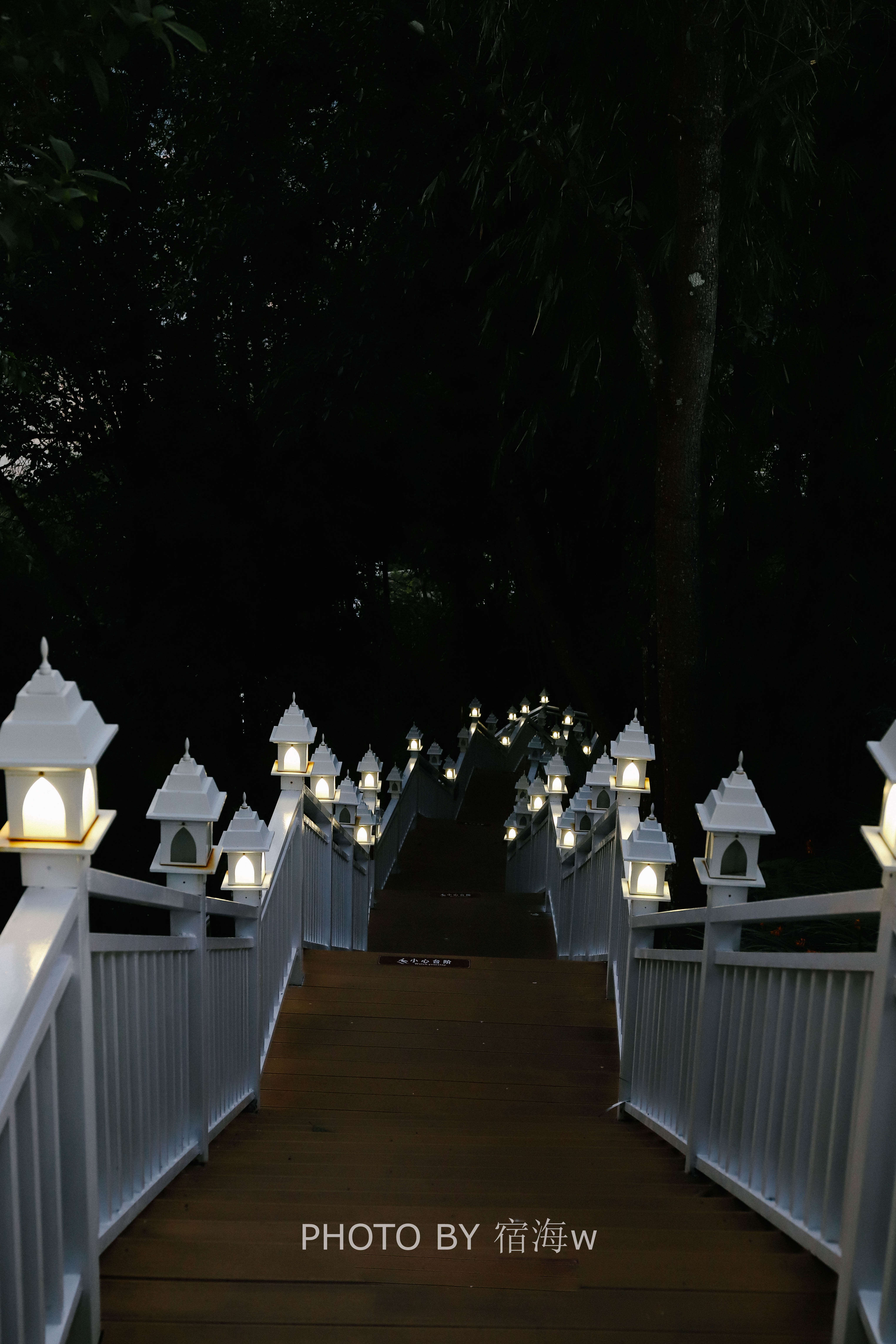 天黑之后,景区的灯全都亮了起来,微弱的白色灯光让这里变成了另一副模样,下山之路也仿佛是通往一个童话世界。