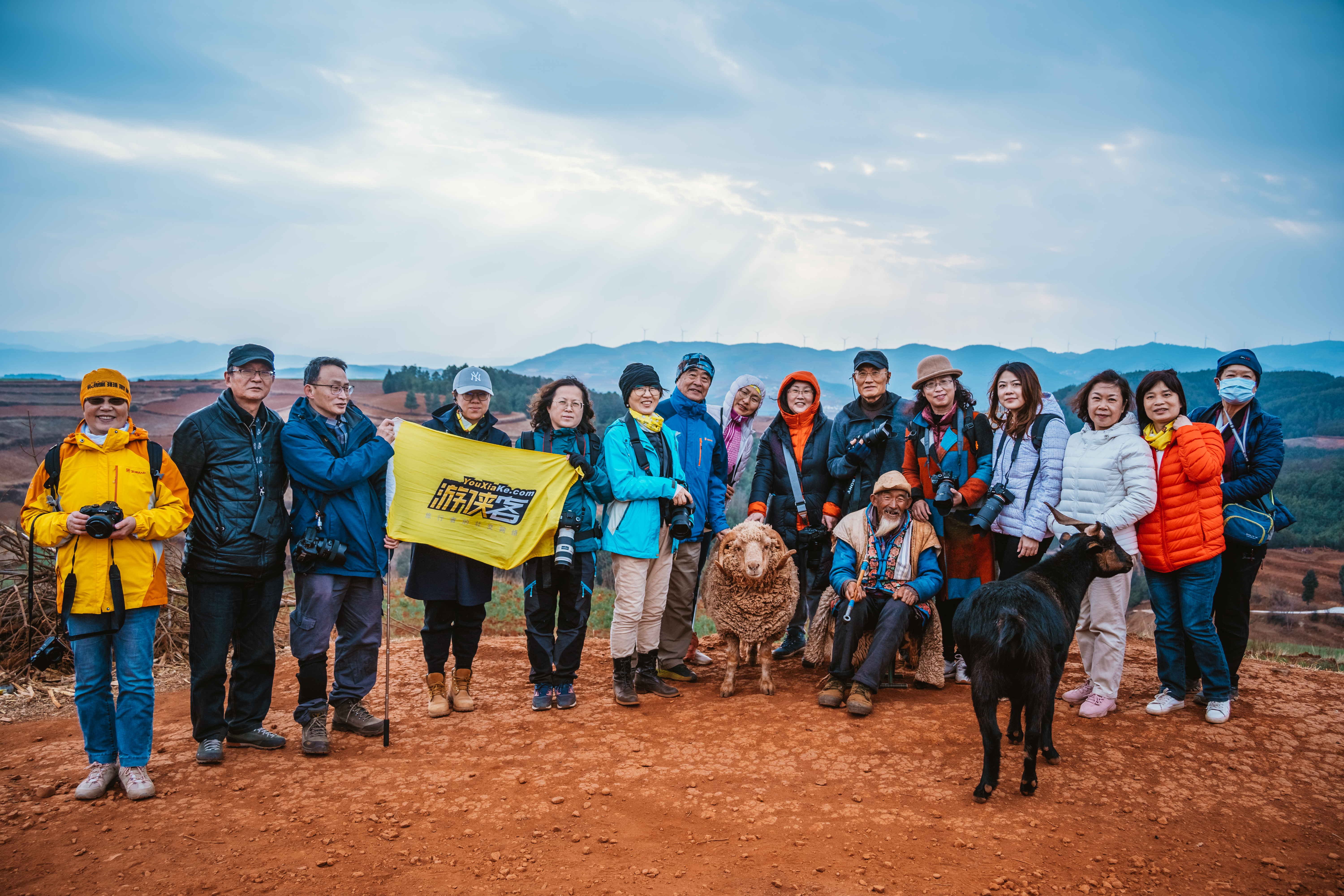 这次二大爷带着他的小绵羊给我们当前景拍摄红土地,旁边的两只黑山羊很不服气为什么只有它是主角,生气之下开始各种捣乱让我们哭笑不得!