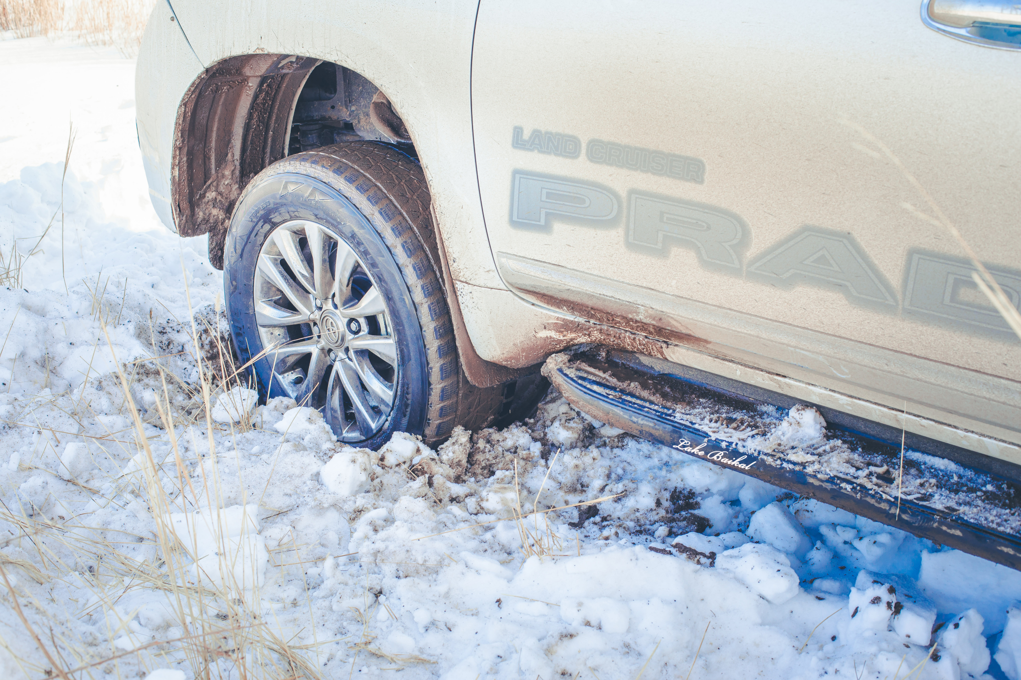 眼前这是一条看似平静的草原路,于是二话不说,我们便沿着它向山顶冲上去。结果就悲剧了,由于积雪太厚,直接把我们车的底盘架了起来,四个轮子都不着地,四驱脱困功能根本用不了。更糟糕的是,车上没有任何铲雪的工具,手机还没信号……有冇搞错?!!