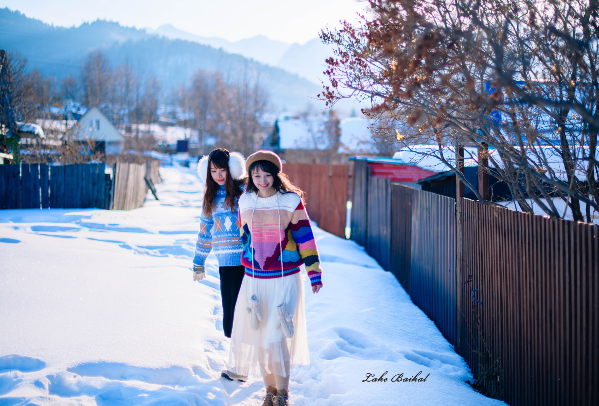 如此美景,当然不能只穿防寒服,而忽略了拍照的需求。 贝加尔湖 基本是蓝白的世界,所以衣服颜色要么鲜艳多彩为主,要么就干脆素一点。