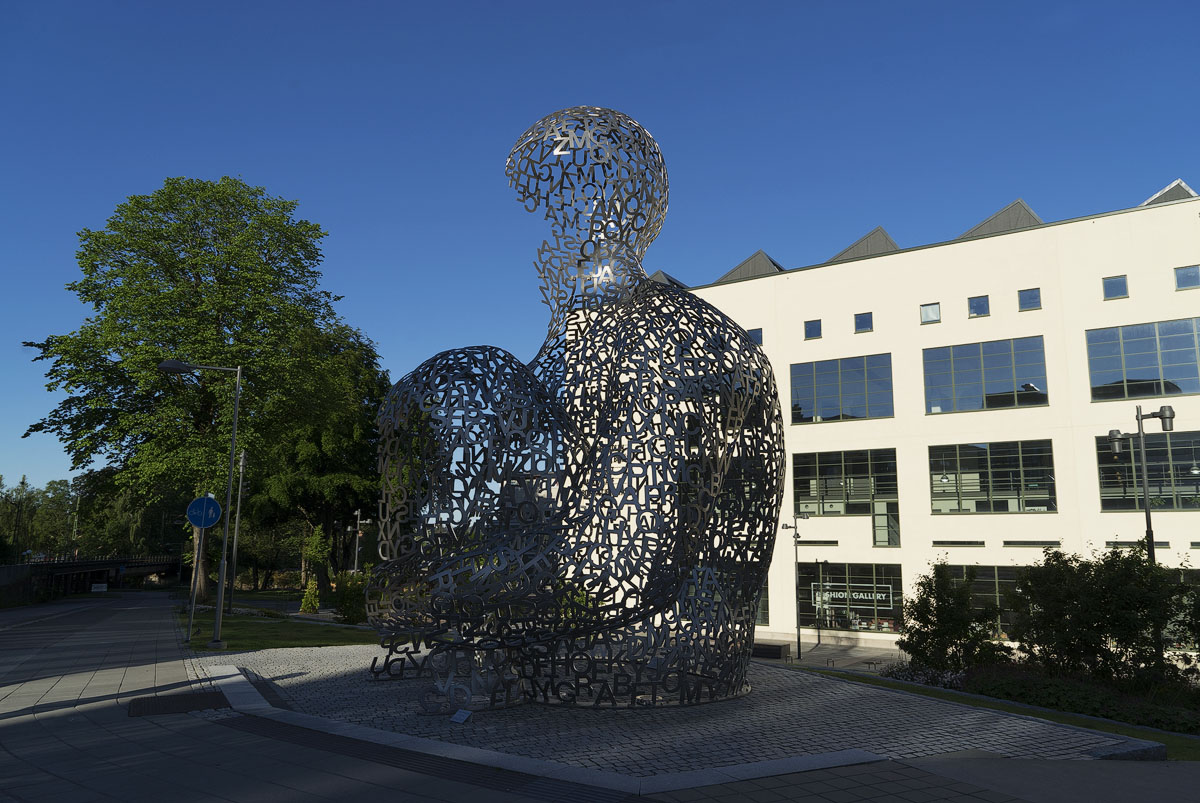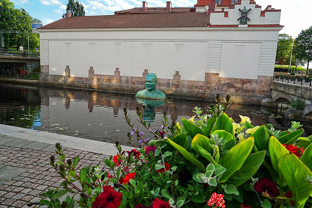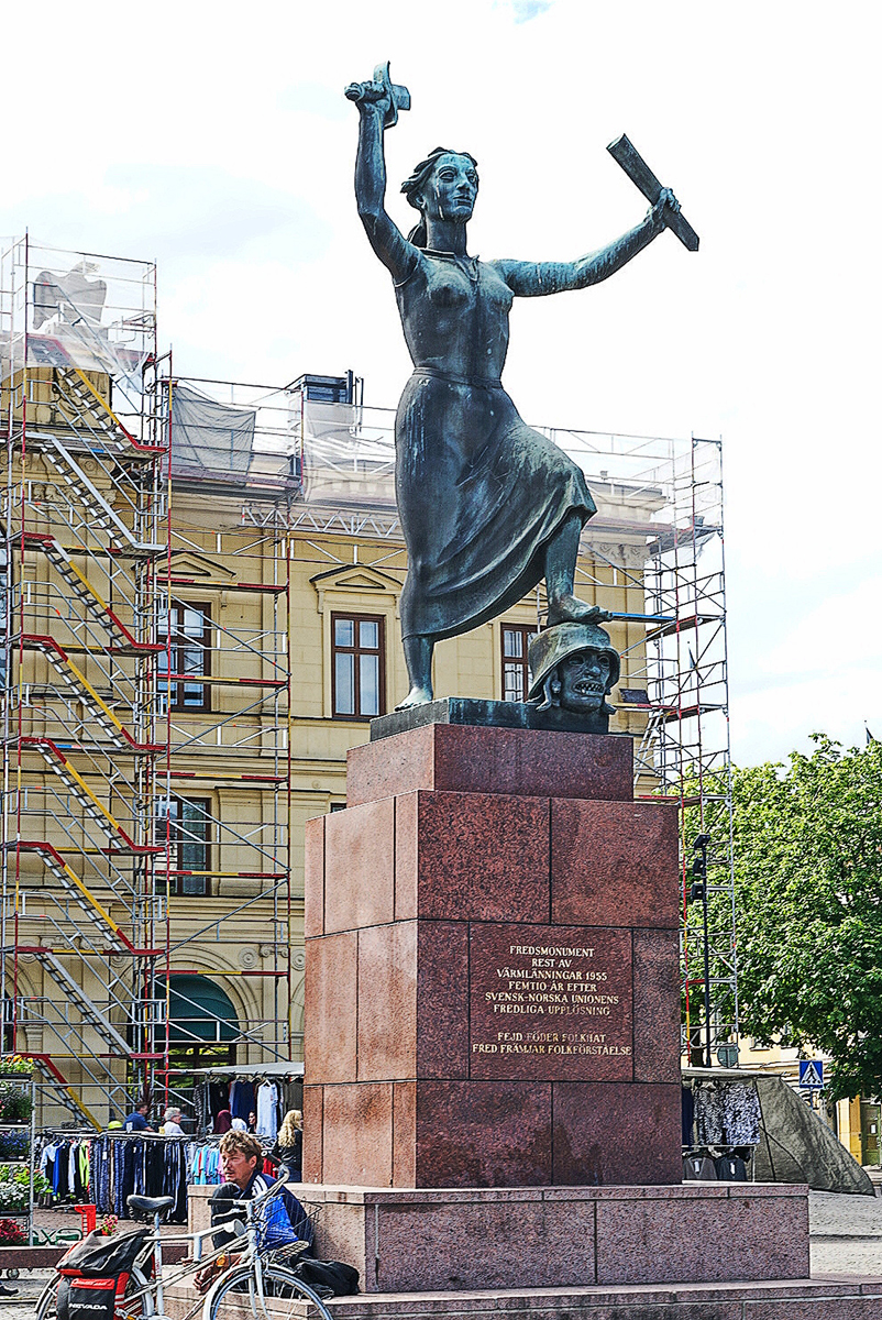 卡尔斯塔德 市政广场有座 和平使者雕像。这雕像象征着折断战争的利剑,将侵略者踩在脚下!