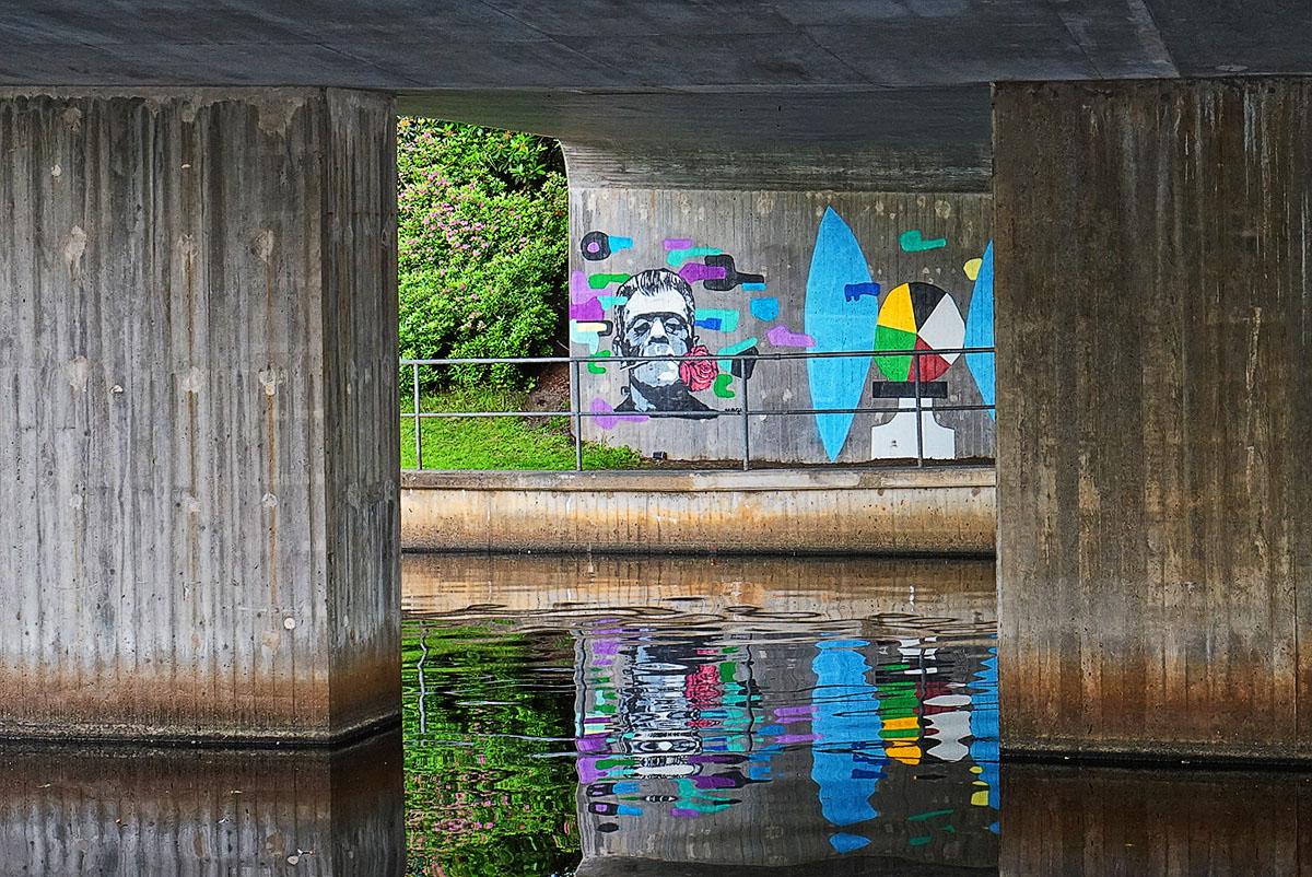 桥下有深色的 耶尔 马伦湖。感觉我们走入油画般的村庄啦。