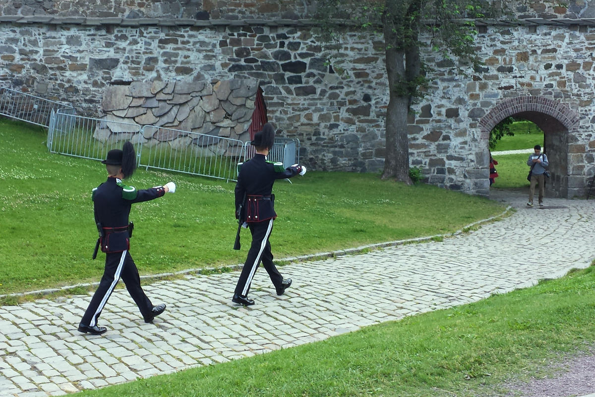 要塞正门处,有巡逻的卫兵在换岗,看他们的古董的服饰,帽子,很是神气啊!!