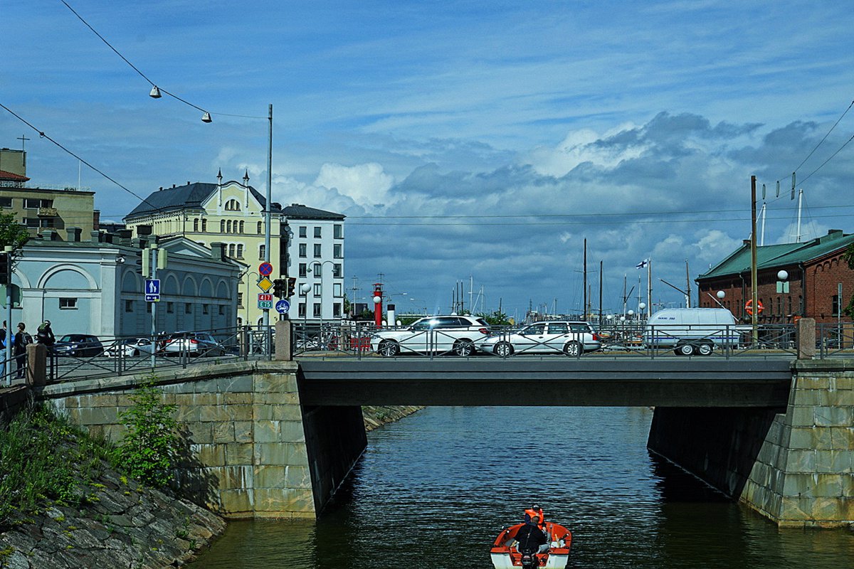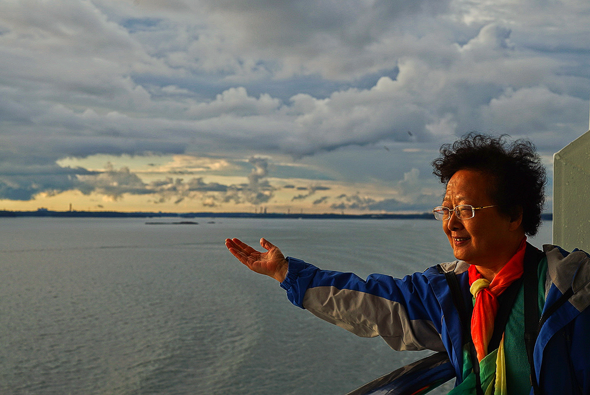 芬兰 湾的景色印象 ----观赏 波罗的海 的港口,远处绿顶是 赫尔辛基 大教堂。