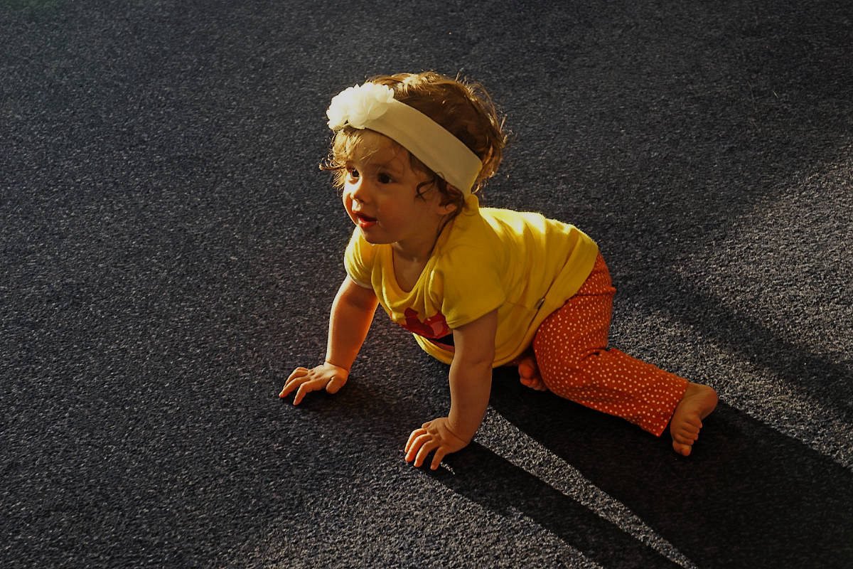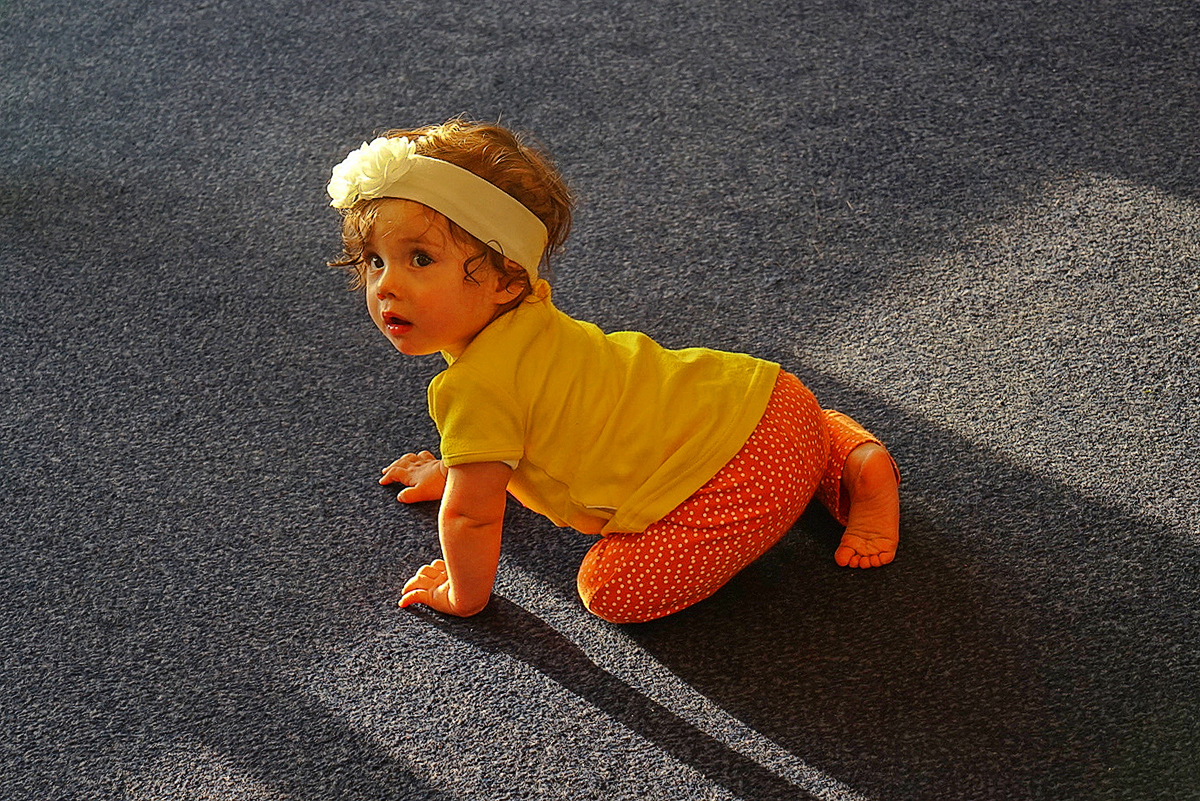 游轮舱内拍下一位学爬学走的小姑娘,她多么天真,可爱啊!!真想抱抱!!