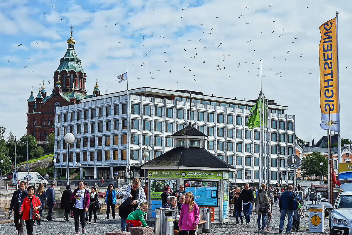海岸边的街景,到处是海鸟飞翔着。我们将乘船离开 赫尔辛基 的码头。。。。