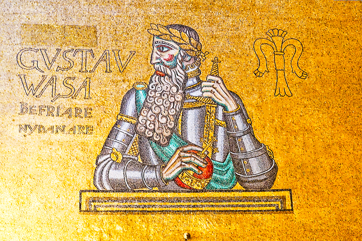 金厅正中间端坐着一位神采飞扬的的梅拉伦湖女神雕像,在金碧辉煌笼罩中,女神两侧分别为来自 亚洲 和 欧洲 的朝圣者,寓意着 瑞典 王国的强大。这幅镶嵌壁画象征着梅伦湖与 波罗的海 结合而诞生的 斯德哥尔摩 ,是人类向往的美好之地,的确是一幅现实主义与浪漫主义相结合的艺术杰作。