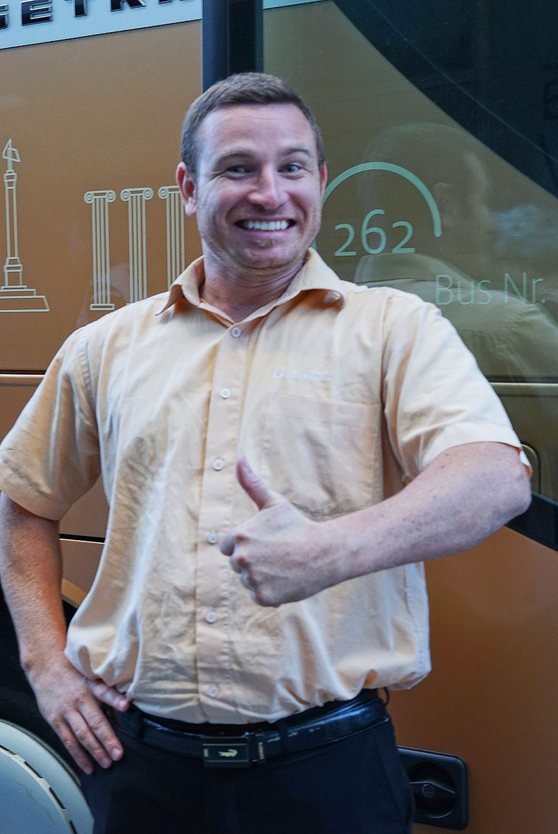 我们的导游教了二句 瑞典 话,你好!----黑的窝! 谢谢!----塔克! 我们的大巴司机是 捷克 人,说给他拍照马上摆出这样的POSE, 很得意的“帅锅 ”一枚吧!