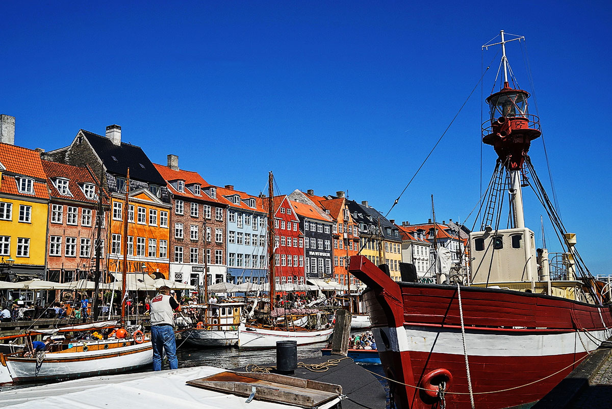 丹麦 首都是 哥本哈根 ,而它的美中之美是新港。 五彩缤纷的砖屋和停靠在港边的高桅木船,形成一道美丽的风景线。新港兴建于1669年至1673年,当初是为了方便货船进入市中心而开凿的运河,远航归来的渔夫水手,得以在这里休息、补充货源或尽情畅饮,新港沿岸也因此发展为商业最繁盛的地区。不料1807年受到英军严重轰炸,新港的景象一落千丈,后来更沦为高犯罪率的红灯区。近年来许多桅船纷纷改为具有特色的酒馆、餐厅,加上沿岸的景色,更博得“全世界最长吧台”的美誉。