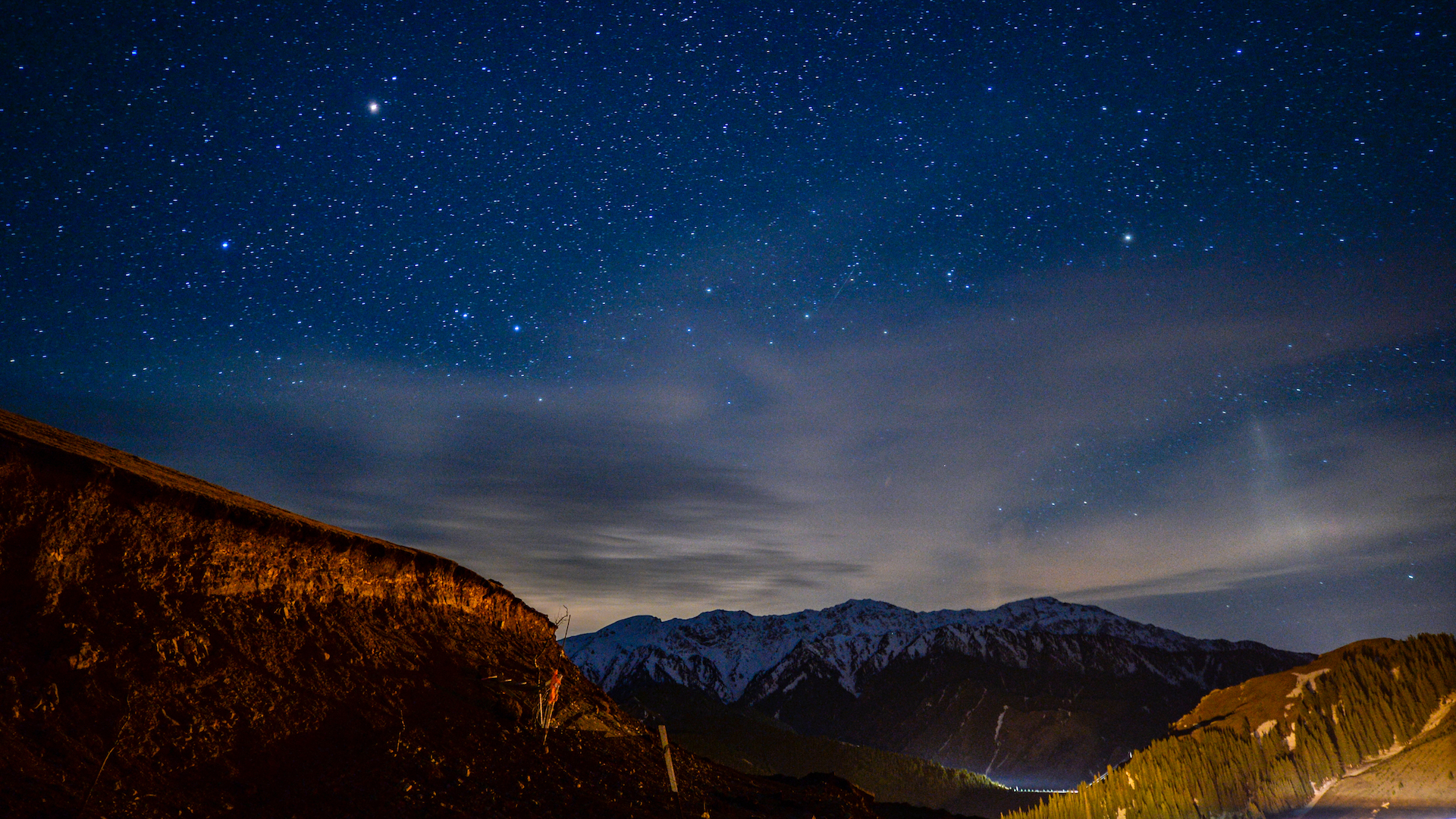 与我之前在马尔代夫和内蒙坝上拍过的繁星相比,新疆的夜空似乎更为繁盛,“天鹅绒上撒满碎钻”似乎也不足以形容这般令人赞叹的天空——那些密密的发光点几乎占据了整个深蓝色的天空,你能清楚地分辨出这个时节北方天空所能看到所有星座。它们在数百乃至上千年前发出的光芒在此刻印入你的眼睛。古人观星而叹人之渺小,而在此刻,除了拍下这一沉默而壮美的一刻外,我也别无其他的想法。