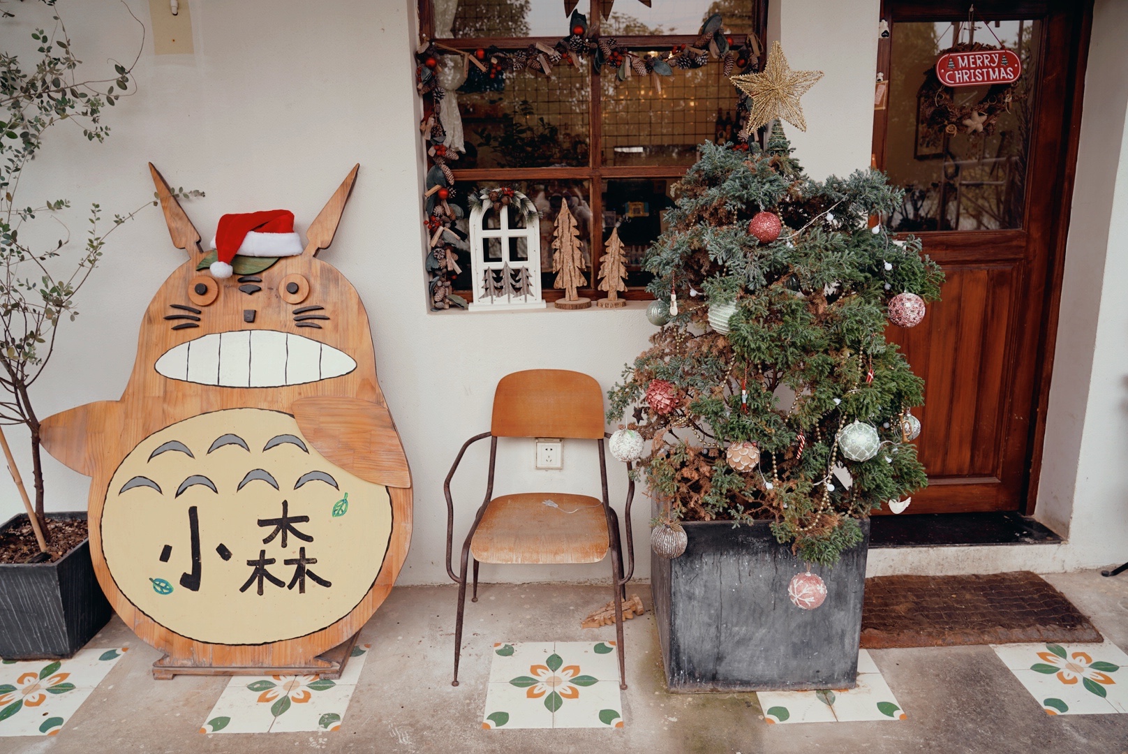 这是一家森系的咖啡店铺,每个装饰都很可爱,外面还有可爱的龙猫装饰物。文艺的日式小店一下子就能拉拢女孩们的心,小森食堂也不例外。小森食堂更有生活的感觉,这里更像个温馨的小家。