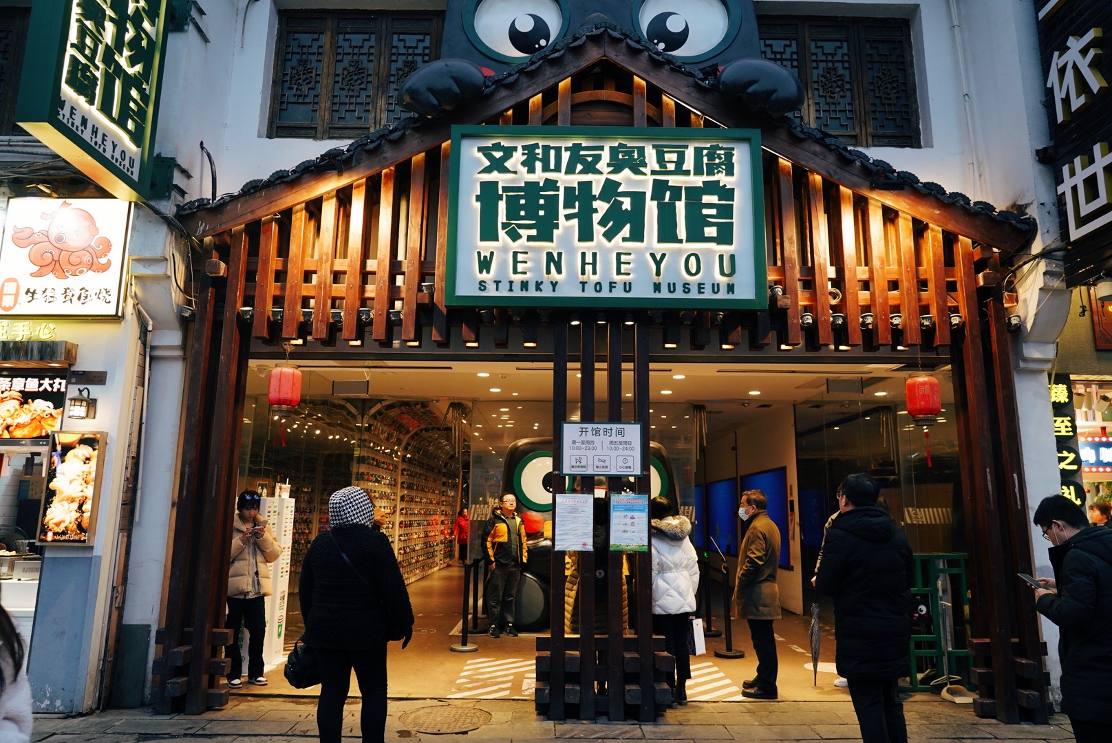 坡子街上有一家臭豆腐博物馆,装饰非常可爱,也很适合拍照。臭豆腐博物馆也太可爱了,小小的一块臭豆腐在 长沙 成为了一个活灵活现的小宝贝,还有一系列的文创周边。