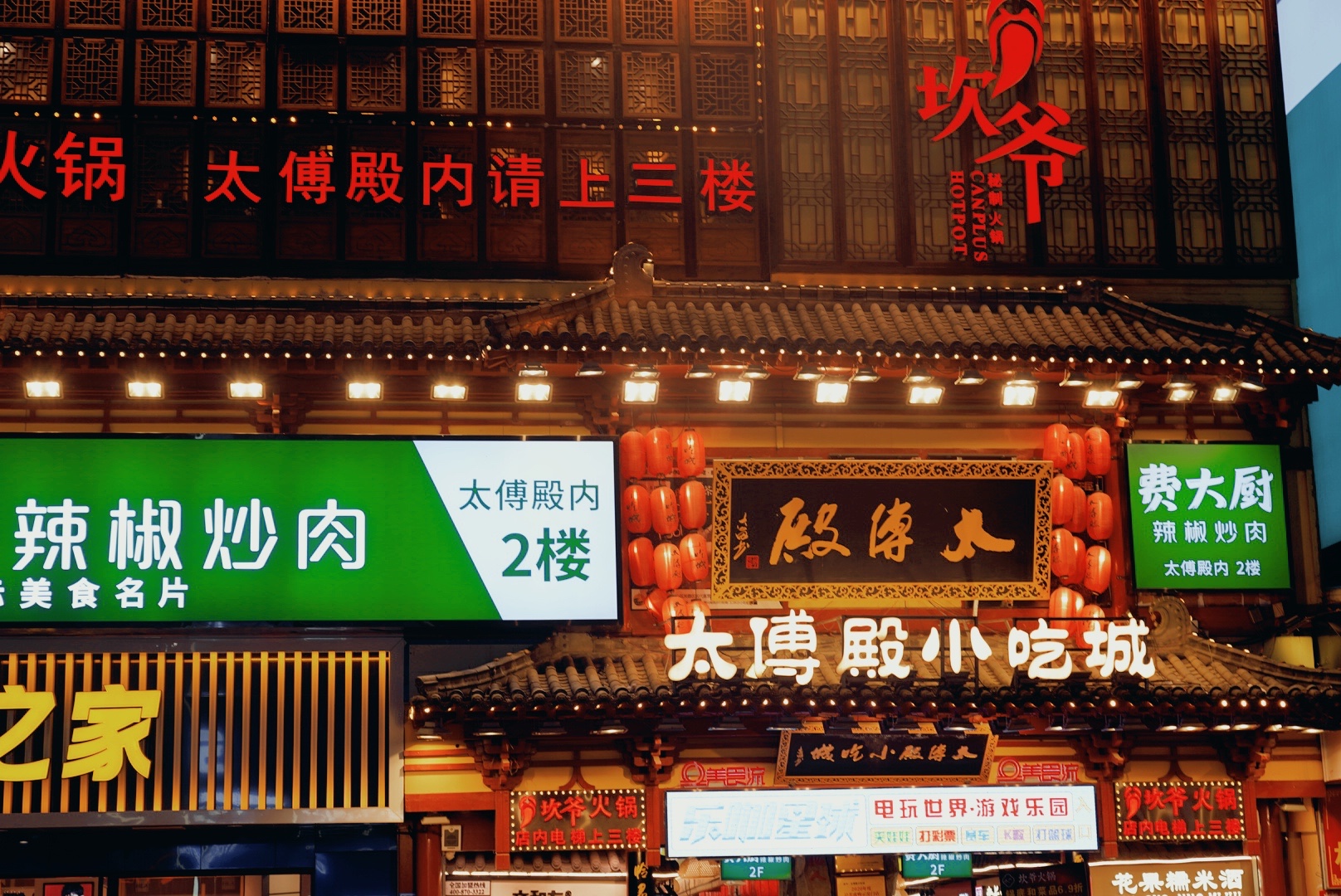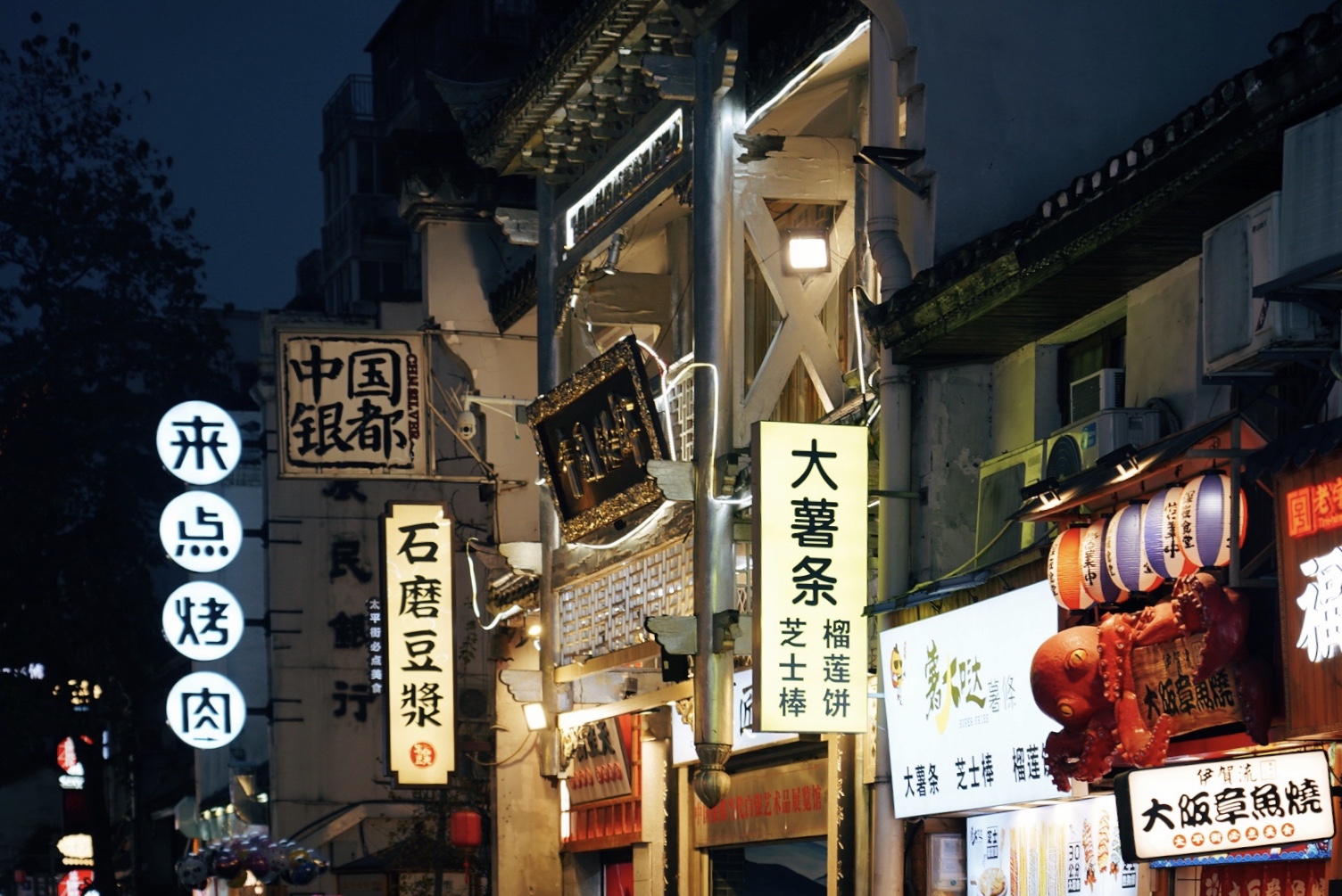 黄兴路步行街是 长沙 市最繁华的地段之一。步行街分为内街和外街,内街又有三层。商铺众多,品牌齐全。除各种常规服装店、饰品店以外,这里还汇集了全国各地的小吃美食。这一面墙上有 长沙 各种各样的店铺门头,晚上的灯光全部打开,实在是很有意思。