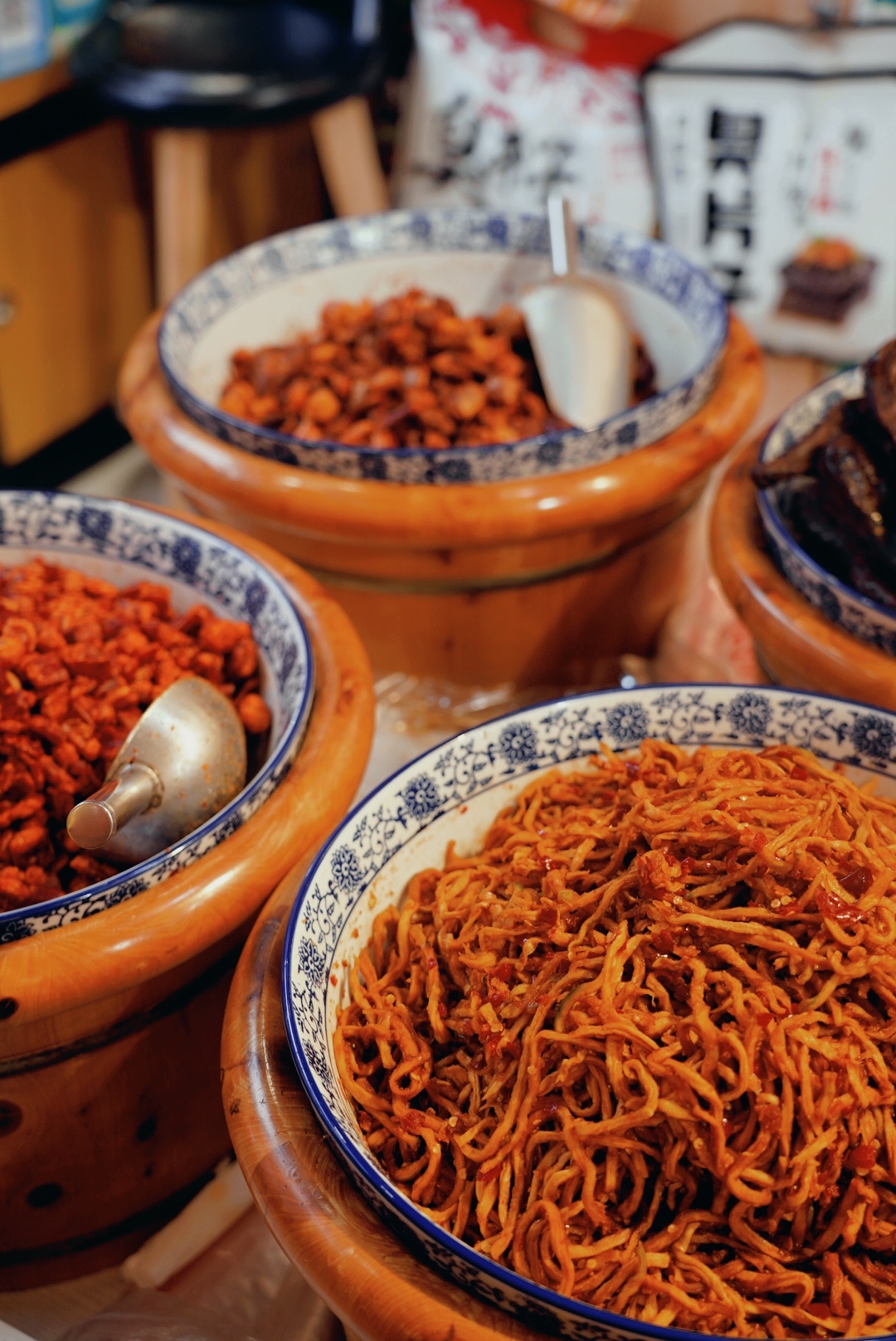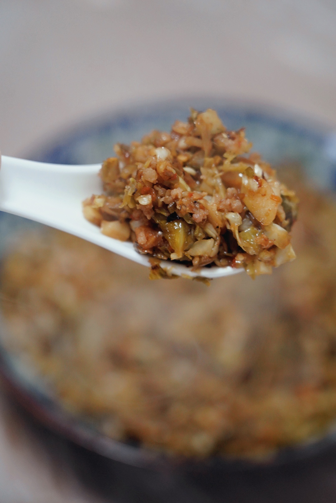 米粉店里最精彩的其实是配料区,剁椒酸菜酸豆角腊八豆干辣椒面……更硬核的会直接给一大盘猪油渣。它们能让米粉吃出一场盛大的宴席感。配料每家各异,调味品倒是很统一。店家仿佛规定过一般,醋只用本地的玉和牌,酱油指定要龙牌。我们点了排骨粉,味道吃过才知道!