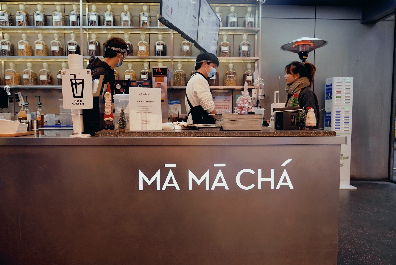 妈妈茶的店铺特别有设计感,一进门就是衰败的石头,顿时成为了很多人打卡的地方。环境宛如废墟里搭建起来的装修风格,工业风的感觉,加上二楼布满整个墙壁的草本植物的罐子,让人惊呼,也太适合拍照了吧!