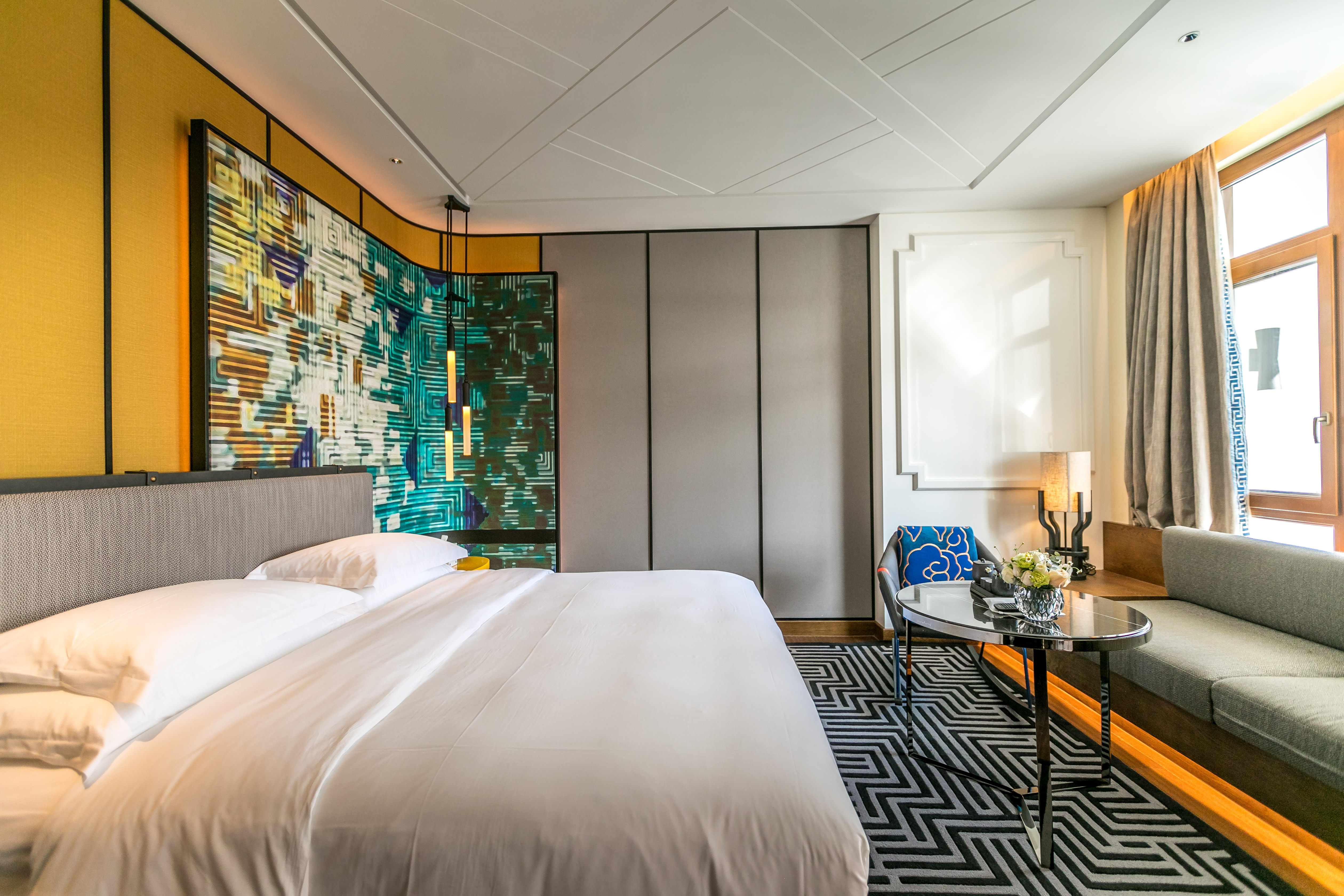 此次我入住的是豪华景观大床房,走进房间内,第一眼就爱上了这个房间的布局,2米的大床对着宽敞明亮的落地窗,床头有JBL蓝牙音响,可以连上手机放首动听的音乐。