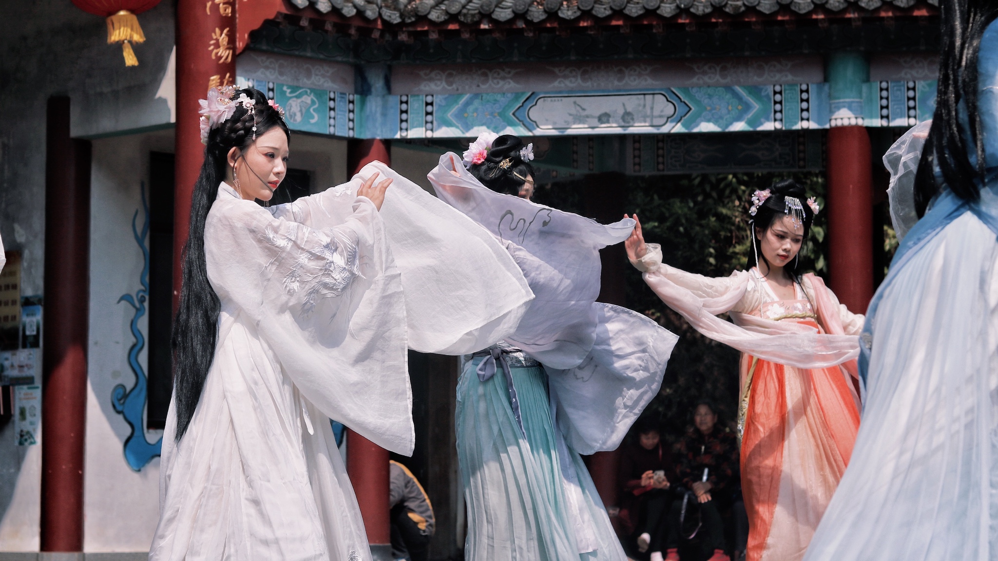 仙女们时而像下凡仙子般舞动人间,时而泛舟于山水之间,时而嬉戏于山野中,让这幽静的山林里多了一份值得探索的惊喜。