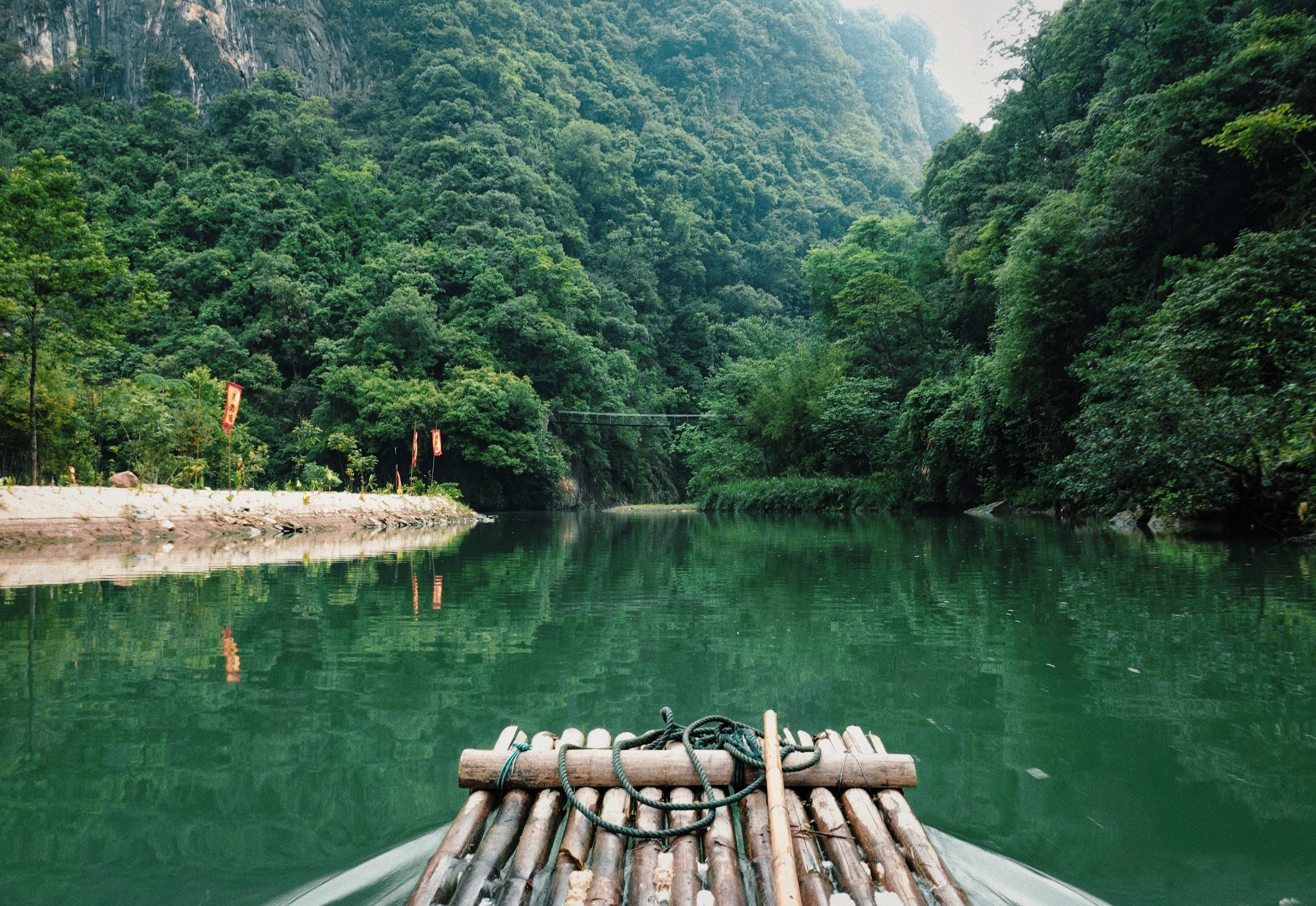 就这样静静地飘荡,微风和清新的味道扑面而来,我浑身的毛孔都舒张开来,坐在竹筏上发呆,真切地感受到“人间有味是清欢”的意境也不过如此。