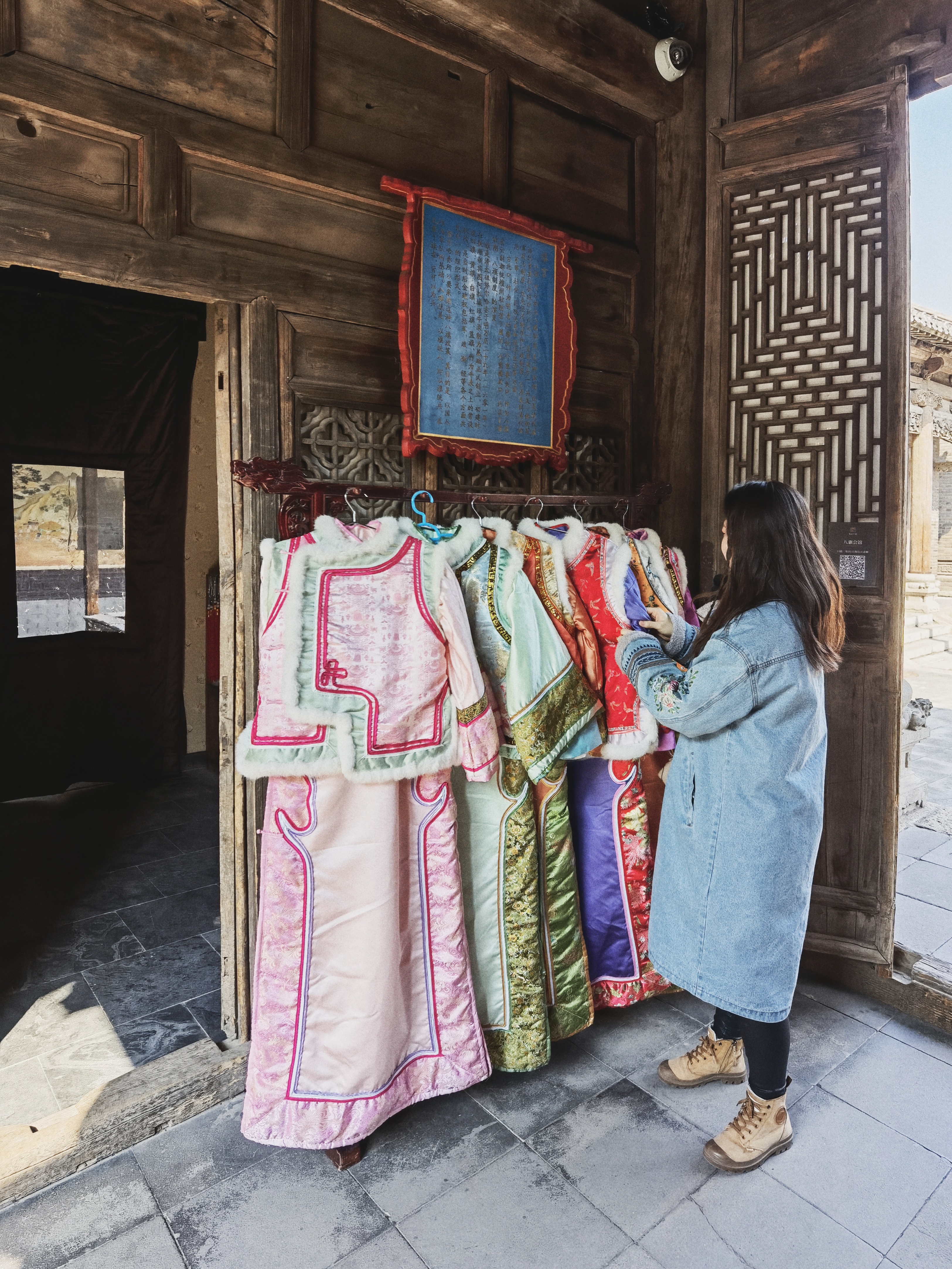 如果天气暖和了,晚清和民国时期的秀禾旗袍马褂等,符合景区建筑特色。