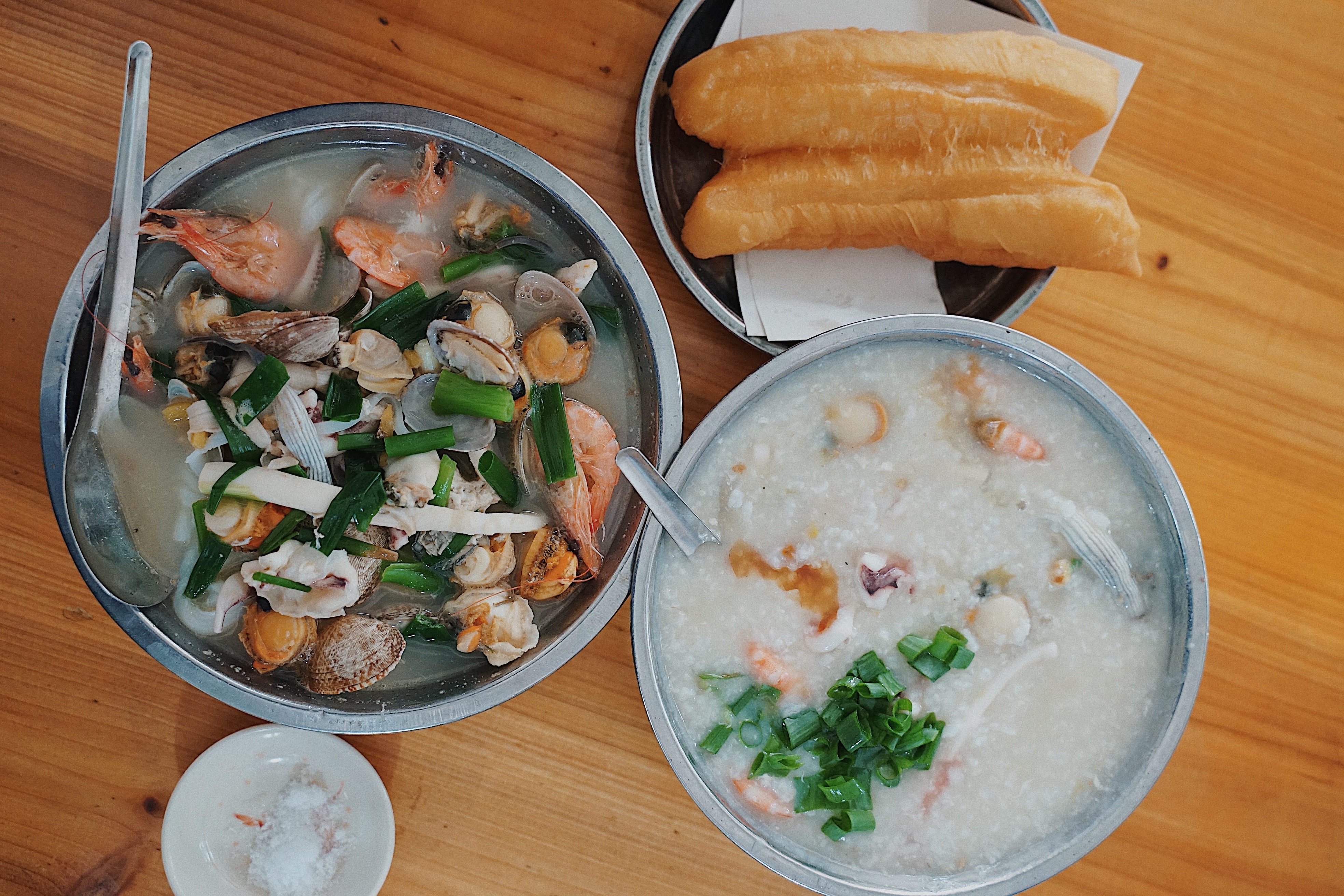 榕树湾美食坊,是《隐秘的角落》同款。海鲜粉、海鲜面里用料超级扎实,虾、鱿鱼、沙虫,还有各种贝壳类堆了满满一碗,粥上淋了芝麻油增加了香气,而粉则要搭配店内的辣椒酱才更加美味。巨大又扎实的水井油条表里如一,咬开才发现,竟然是实心的。