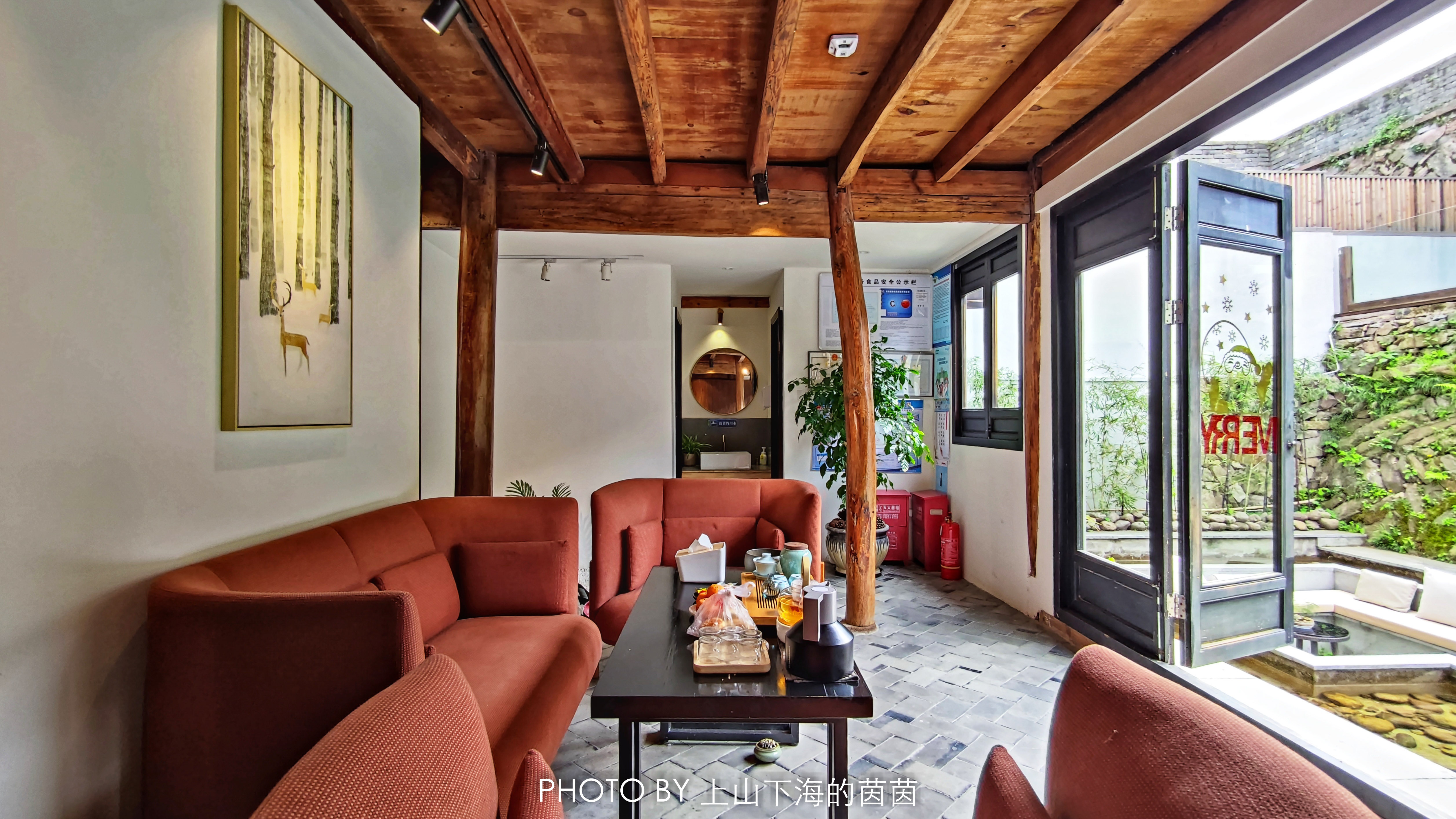 【三抚一宅】总共有6个房型总共10套房间,我这次入住的是201南山台,是一个LOFT房型附带一个室外小花园。外观是徽派建筑风格,和周围古城风格很搭;室内是现代简约欧式风格,历史感与时尚感相得益彰!