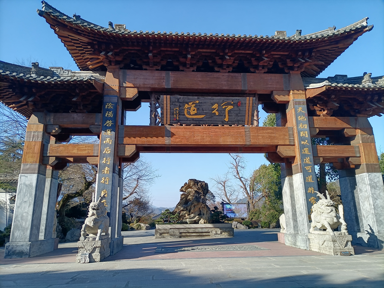 进入景区右边就是十二生肖长廊,并附有沈炯的《十二属诗》:鼠迹生尘案,牛羊暮下来。虎啸坐空谷,兔月向窗开。龙吟远青翠,蛇柳近徘徊。马兰方远摘,羊负始春栽。猴栗羞芳果,鸡砧引清怀。狗其怀屋外,猪蠡窗悠哉。