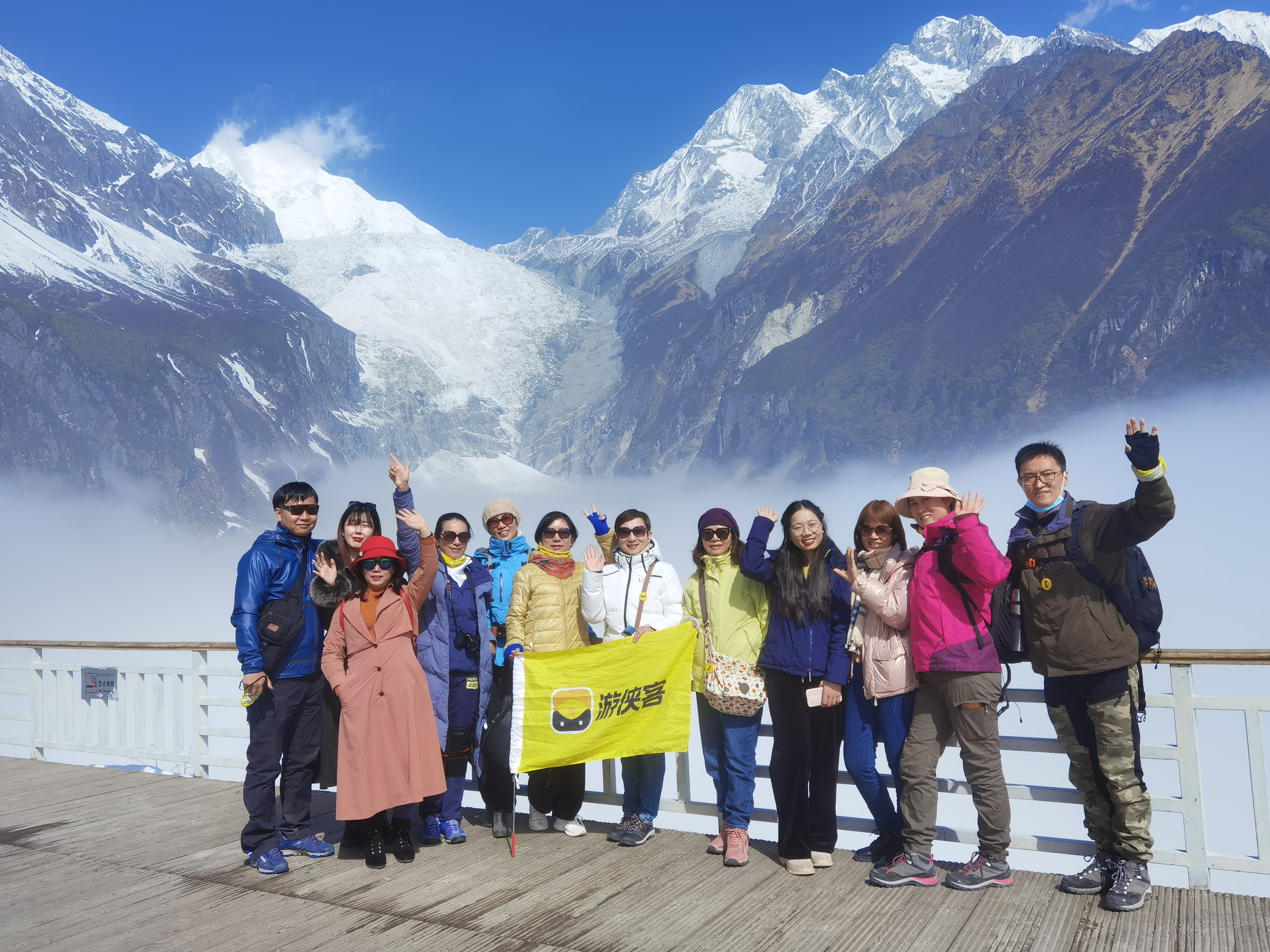 运气非常不错,看到了云海和贡嘎,大家都非常激动!